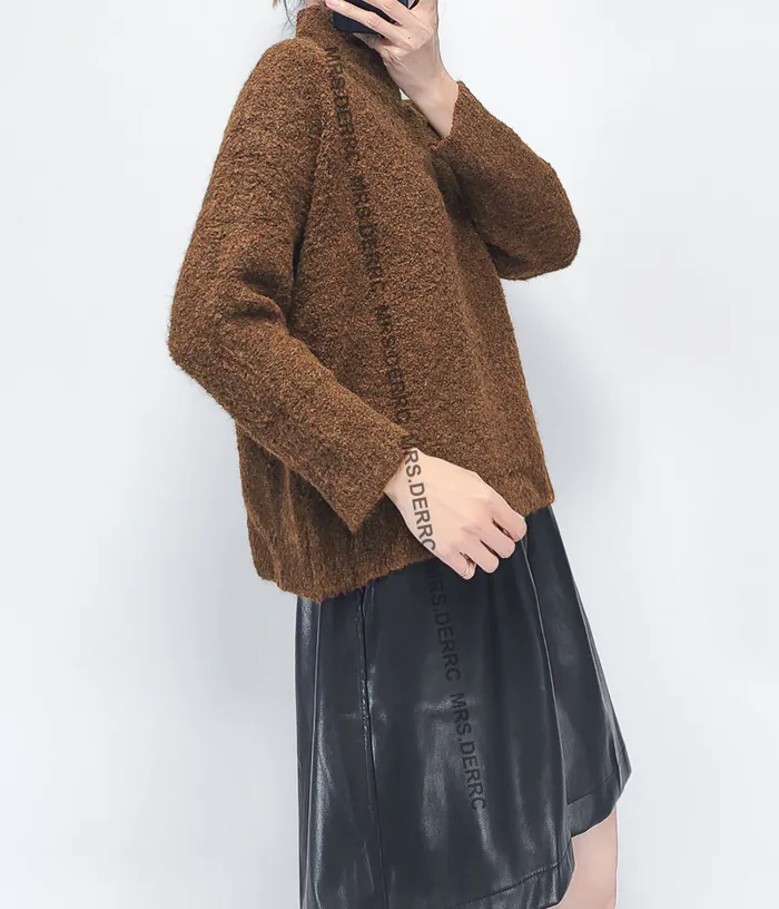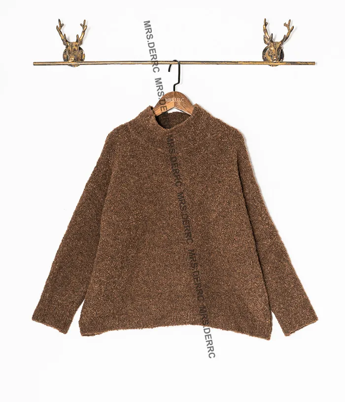QQ毛針織立領針織上衣(咖色)