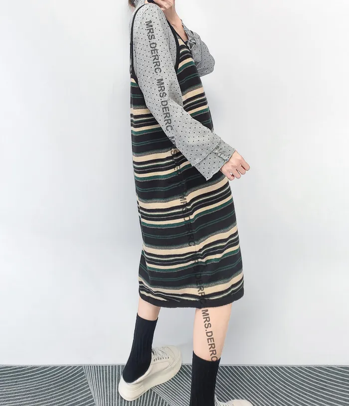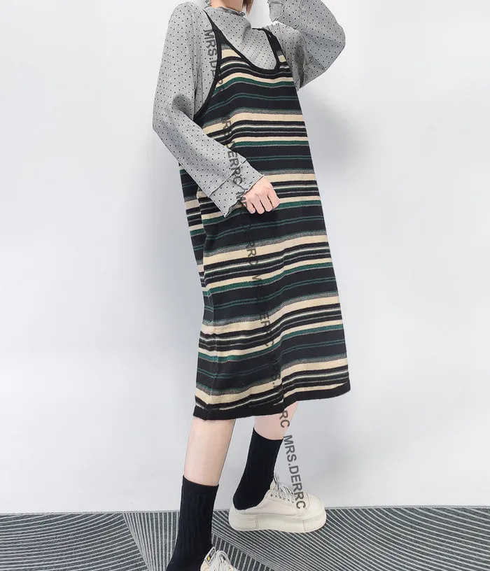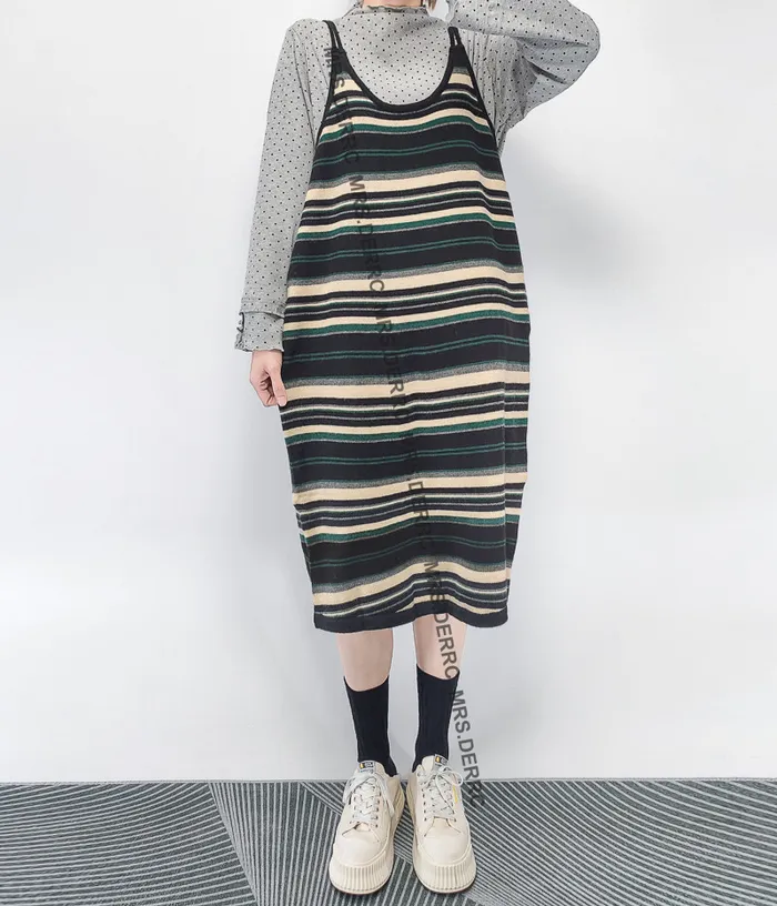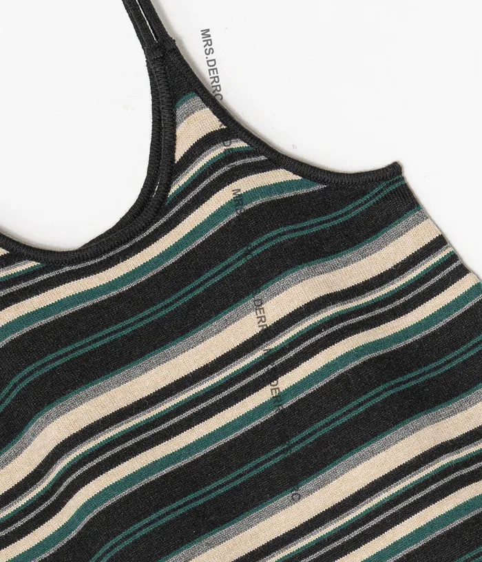 針織條紋細肩帶吊帶裙