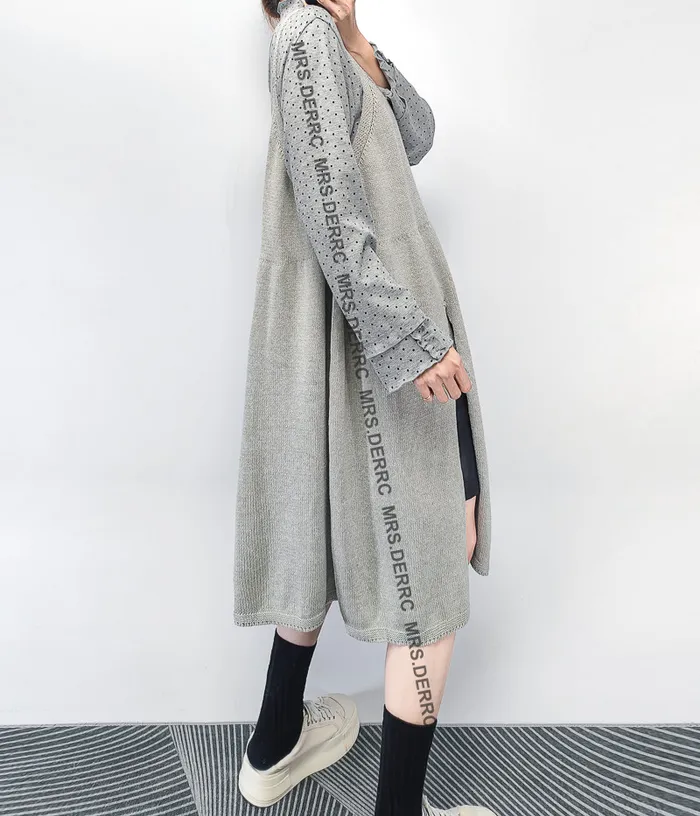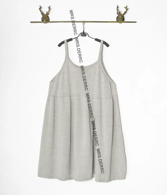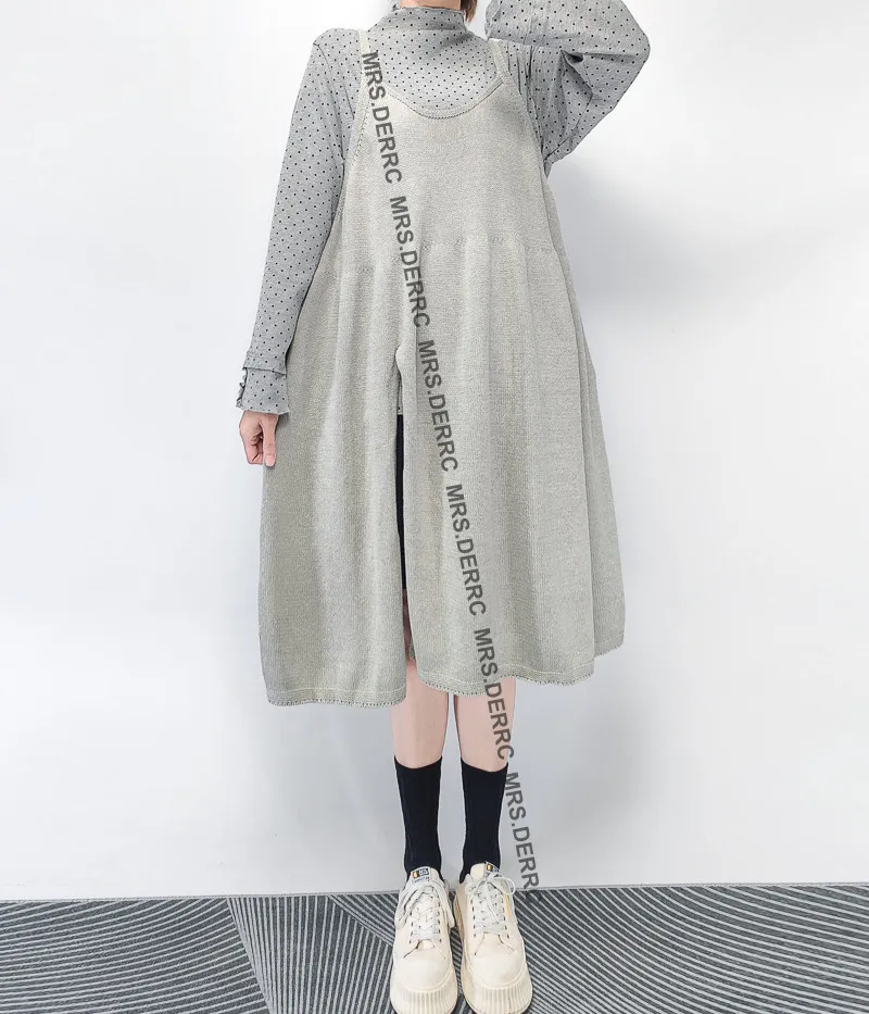針織細肩帶高開岔寬鬆長背心(淺灰)