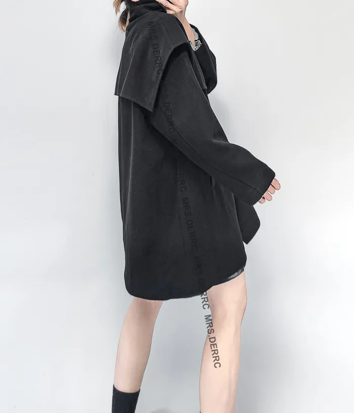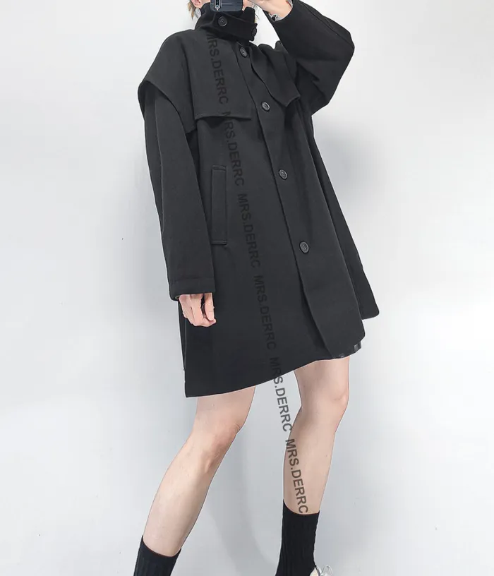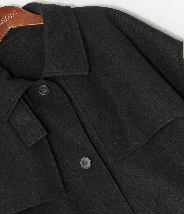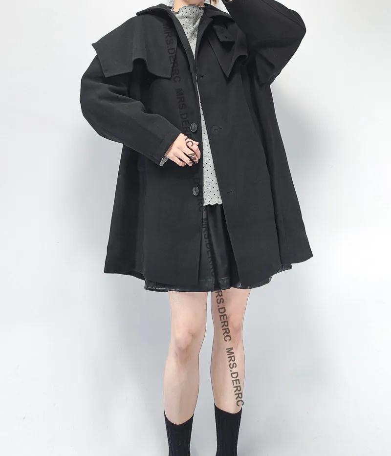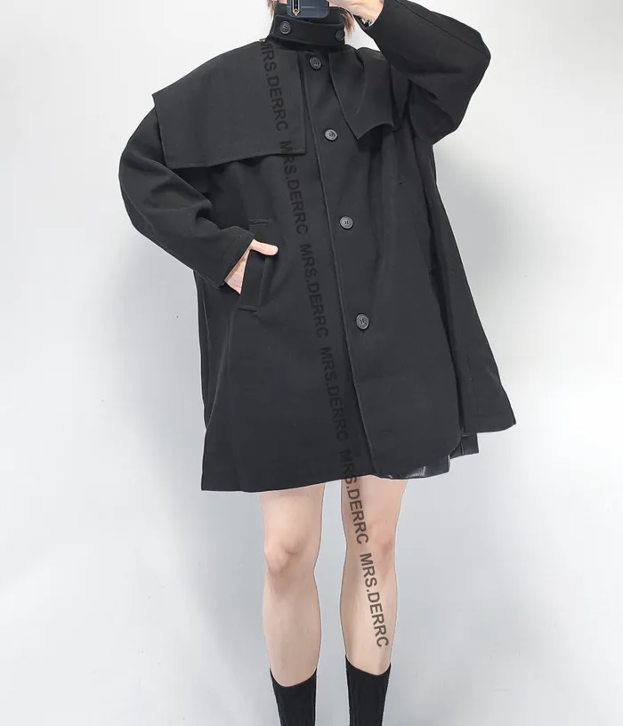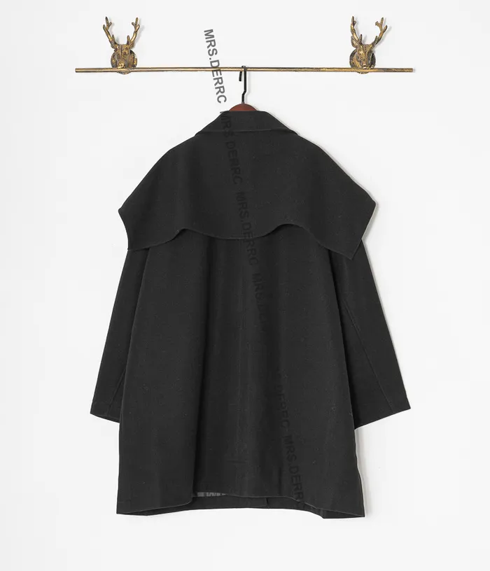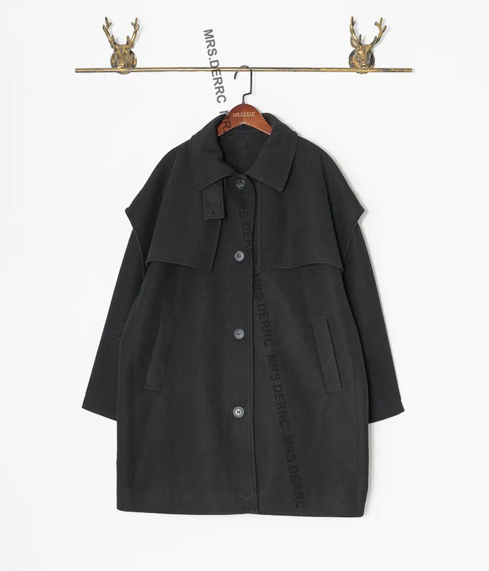 棉混紡立領小披肩開釦口袋外套(黑色)