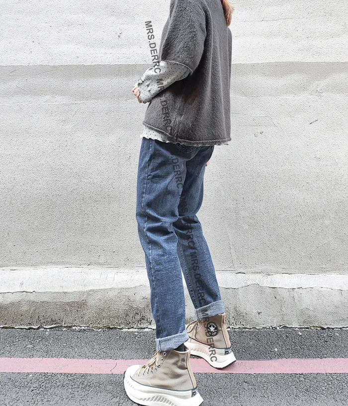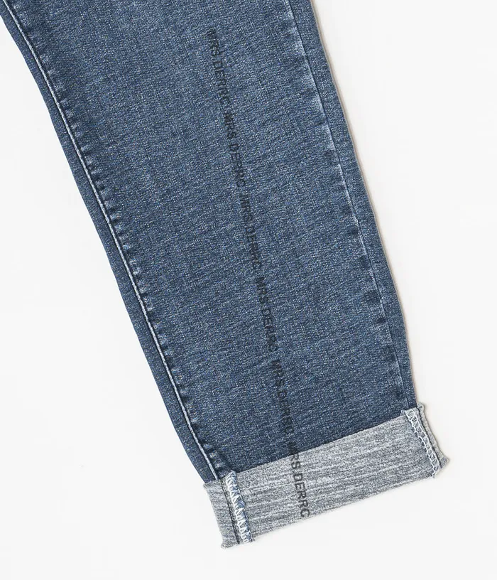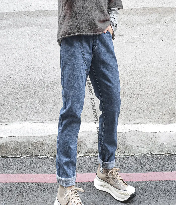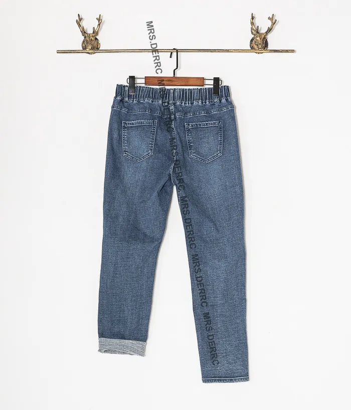 水洗淺刷色牛仔鬆緊腰薄磨毛口袋褲