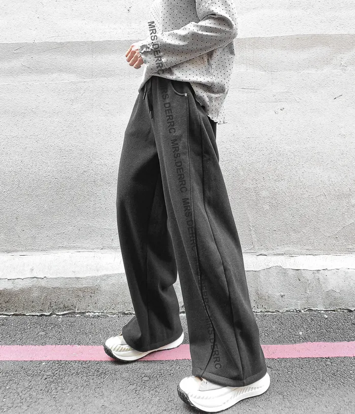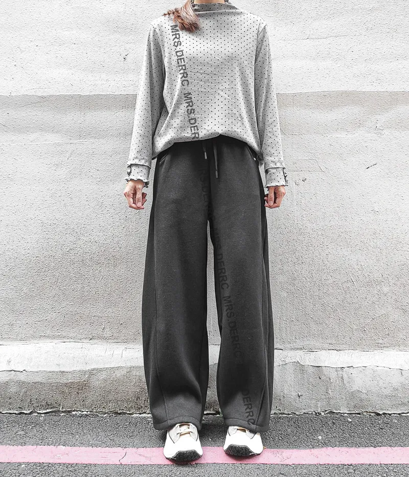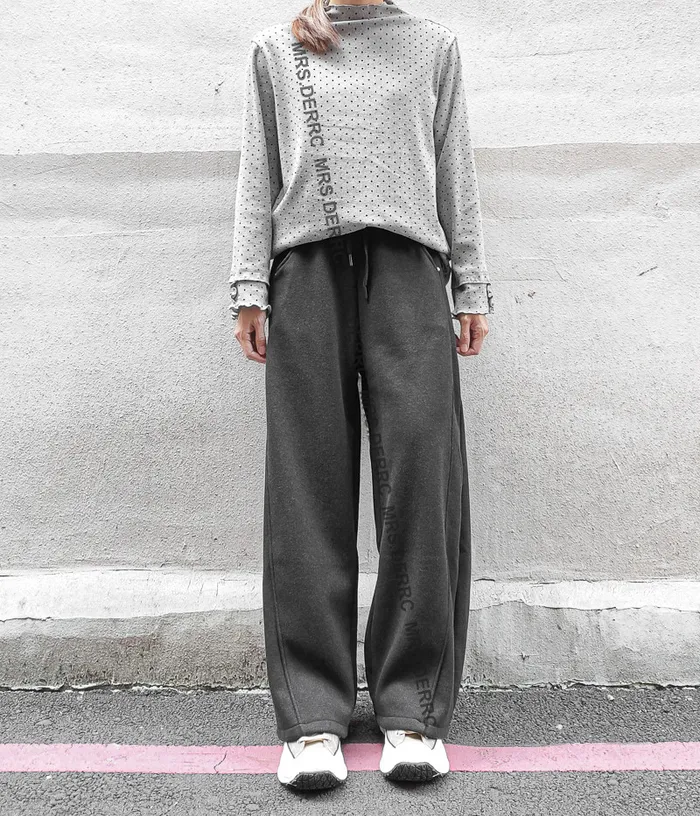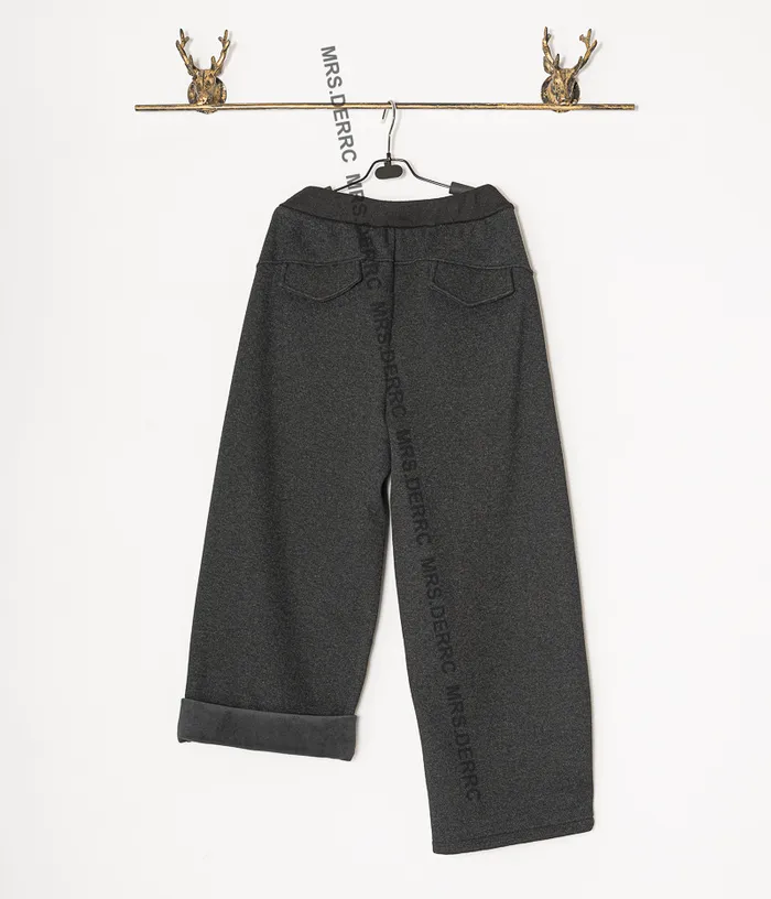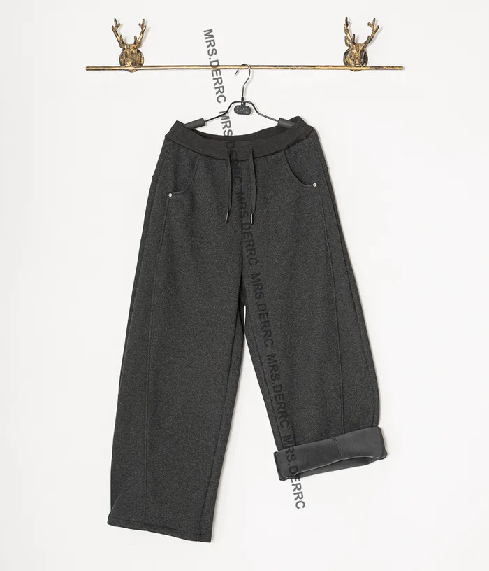 混紡內磨毛抽繩剪裁口袋褲(灰黑色)