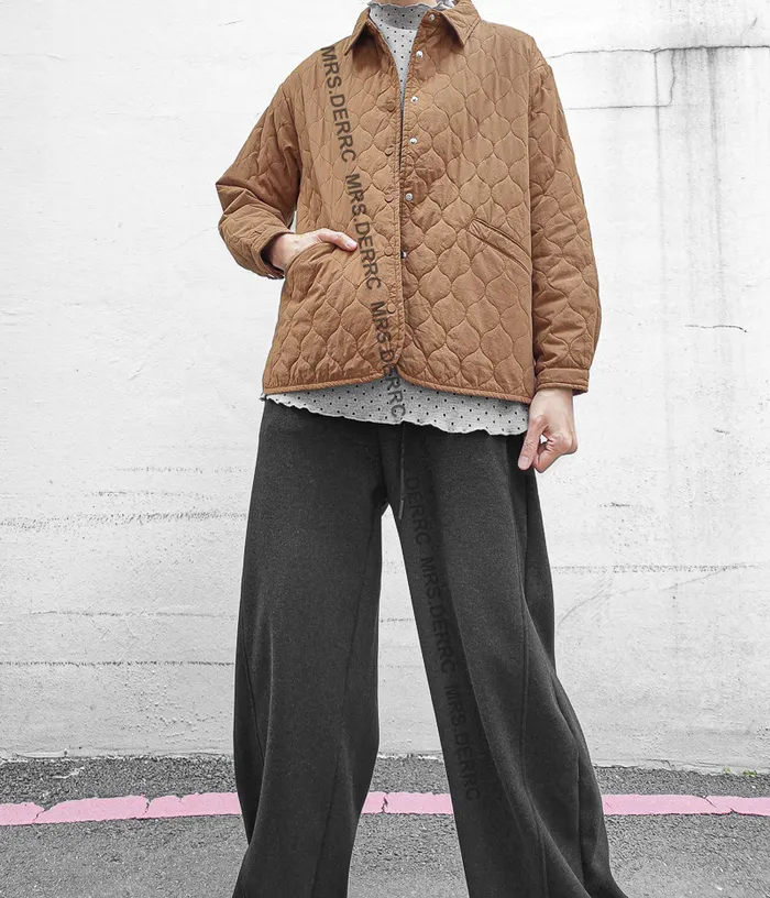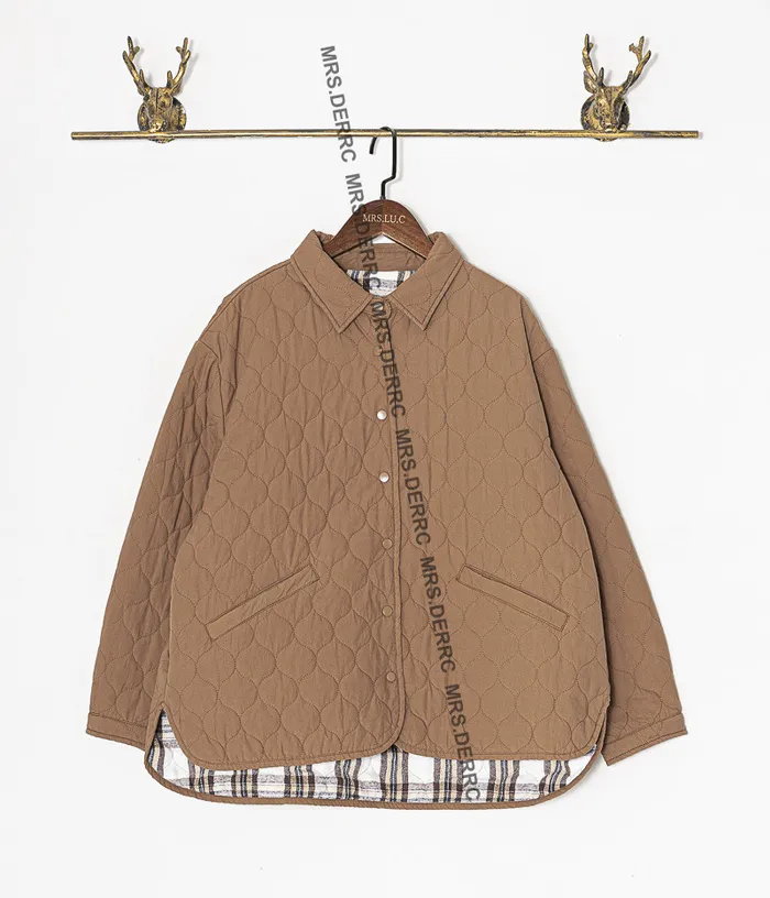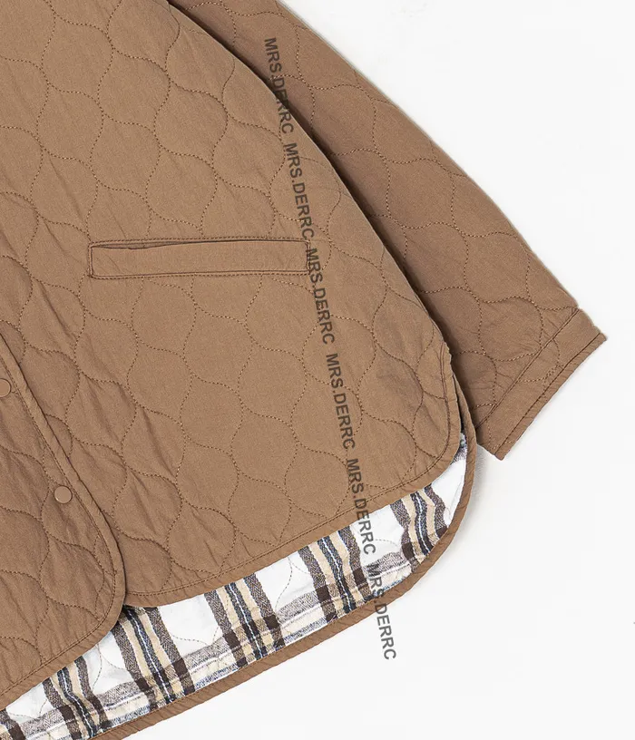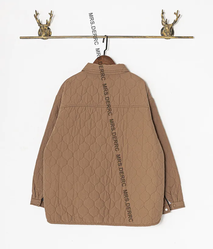 棉質衍縫開釦薄鋪棉口袋上衣(咖色)