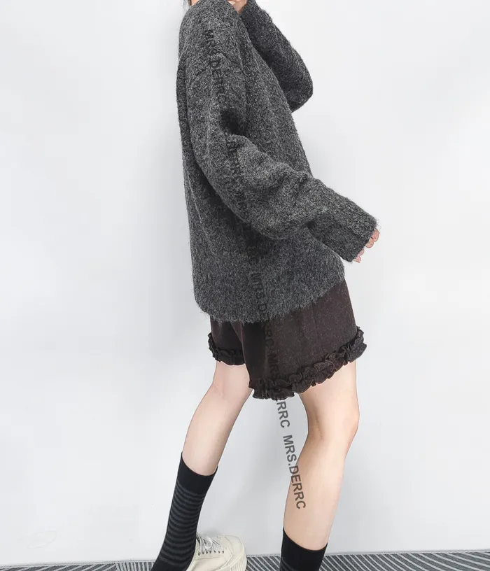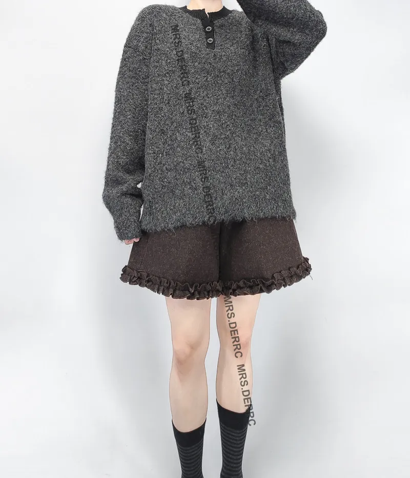 混紡毛呢內磨毛褲腳造型口袋短褲(深灰)
