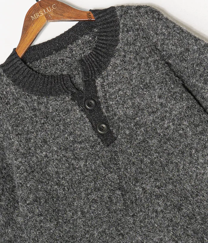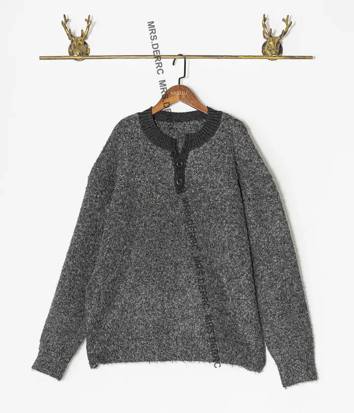 針織半開釦簡約上衣(灰色)