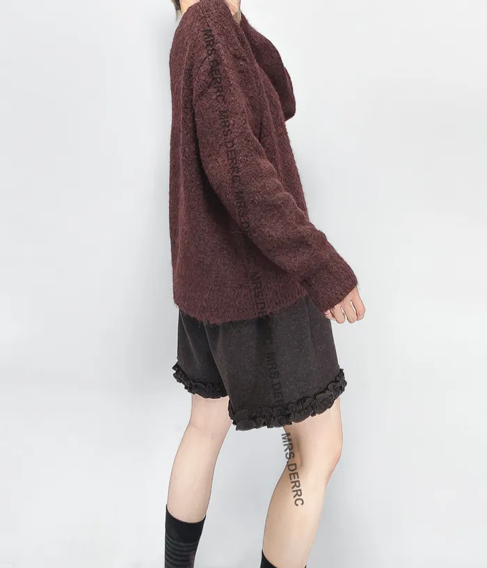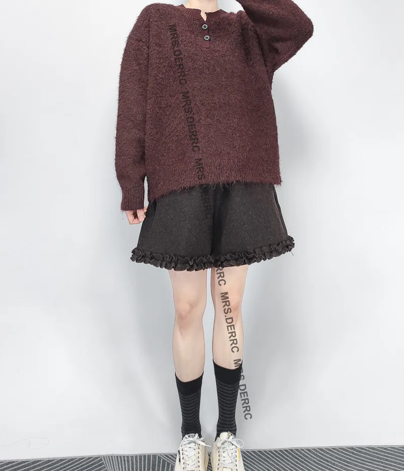 混紡毛呢內磨毛褲腳造型口袋短褲(咖色)