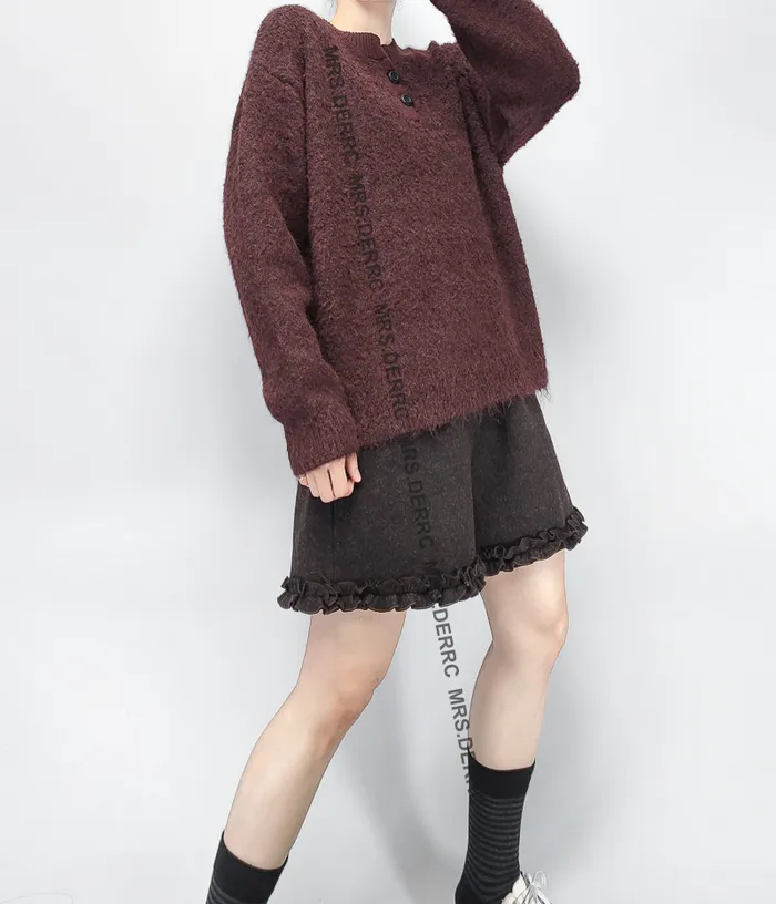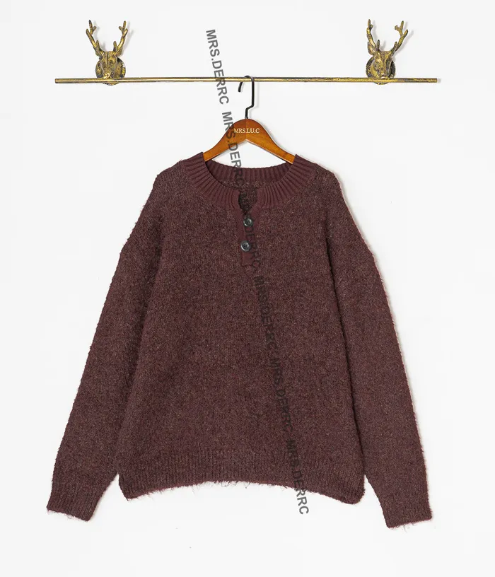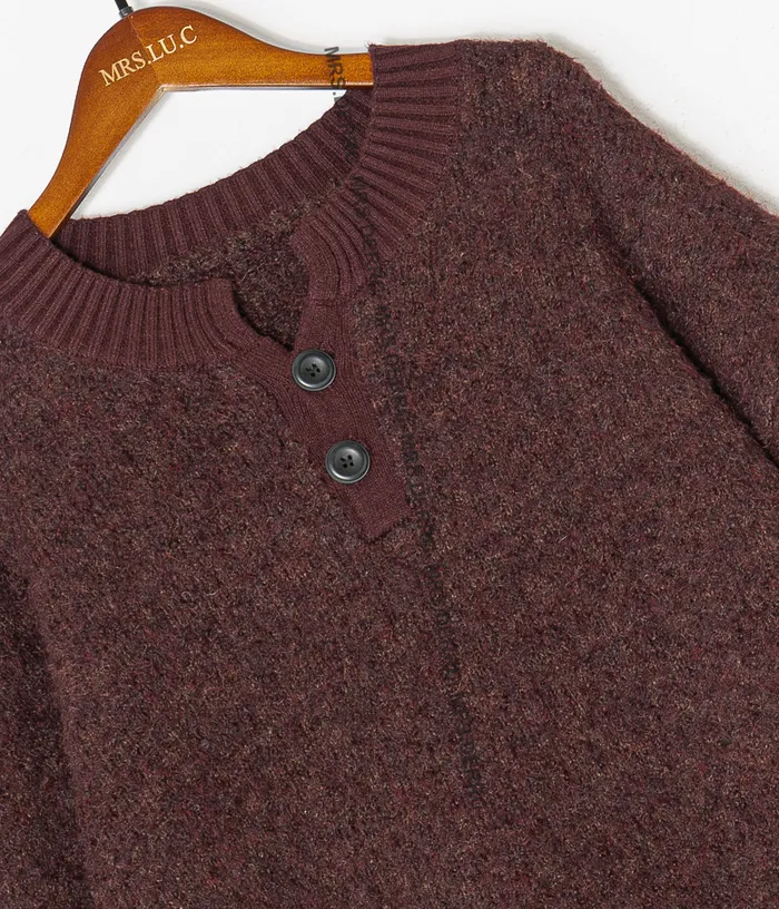 針織半開釦簡約上衣(酒紅)