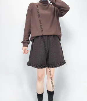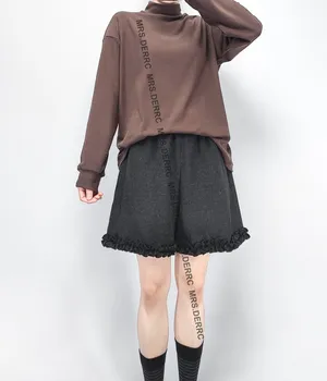 混紡毛呢內磨毛褲腳造型口袋短褲(咖色)