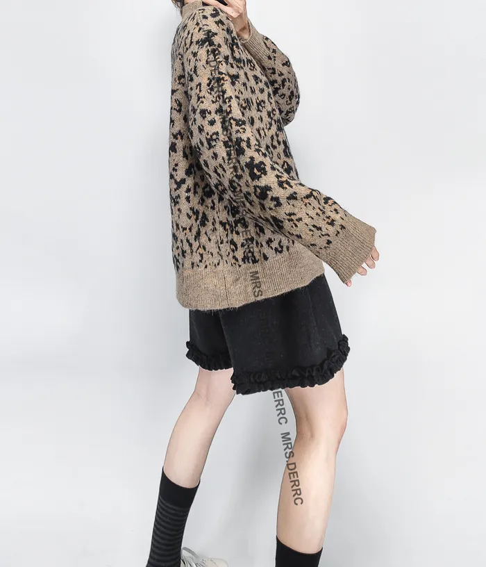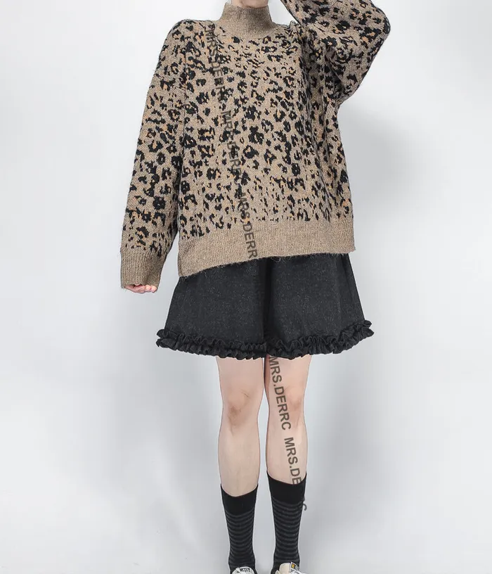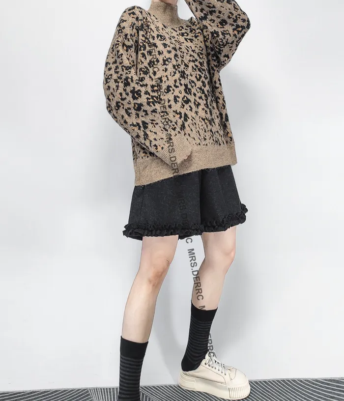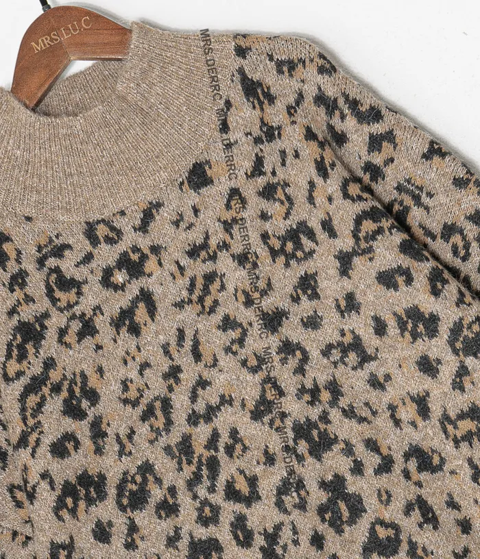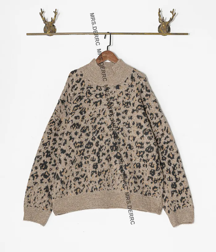 針織立領豹紋上衣(咖色)