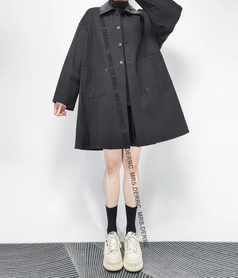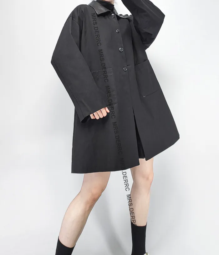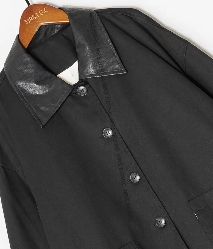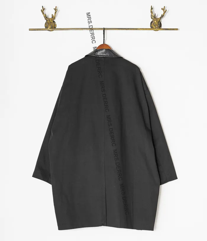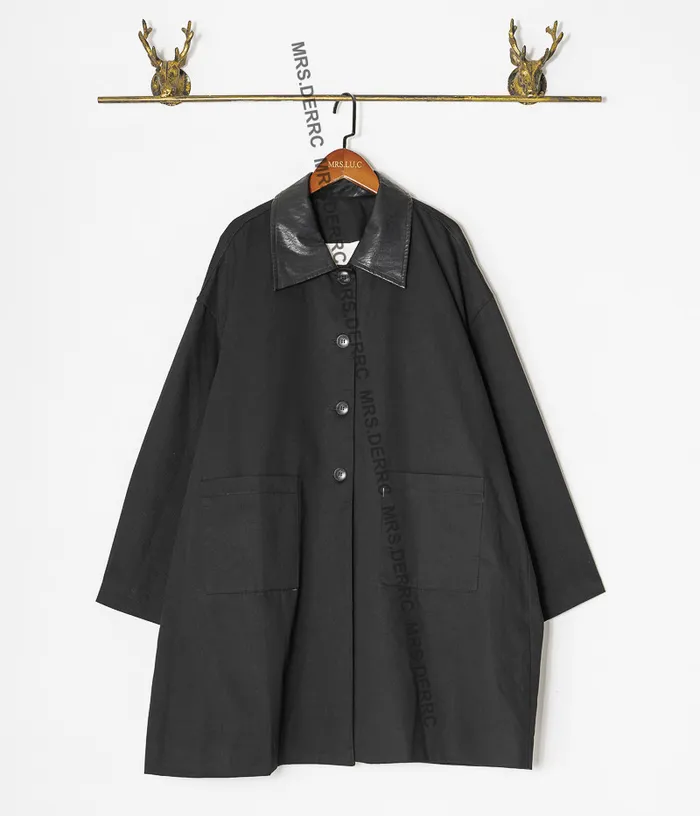 棉質拚仿皮領後開岔口袋外套(黑色)