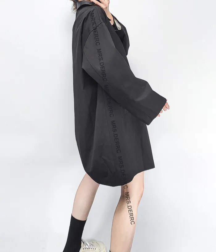 德絨立領大彈性寬鬆上衣(黑色)