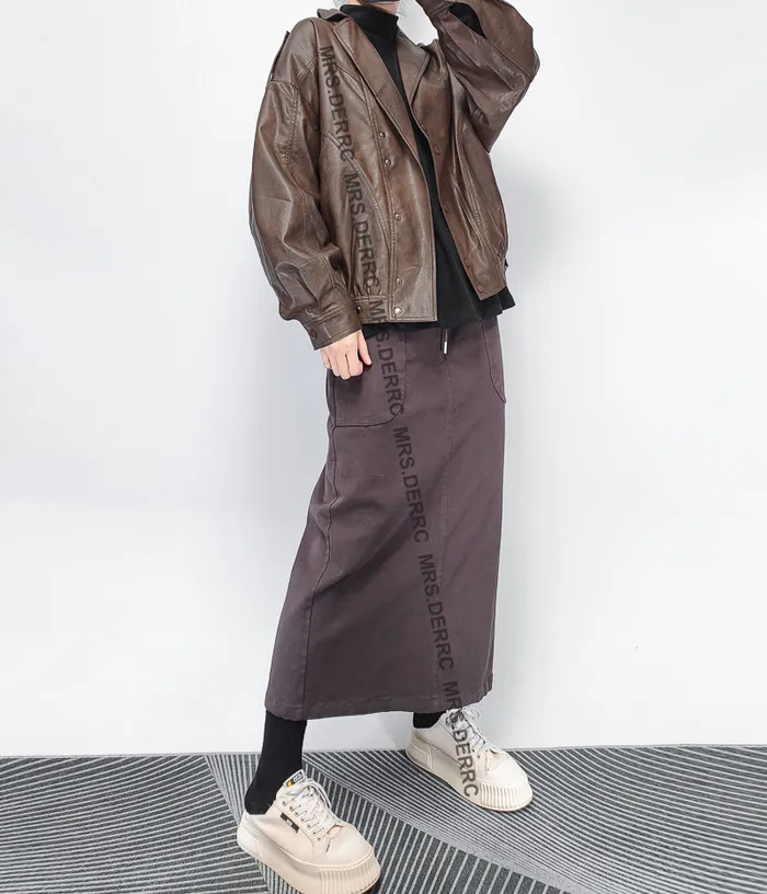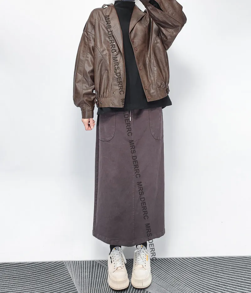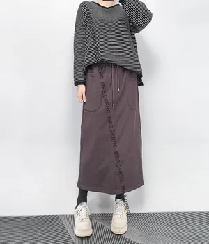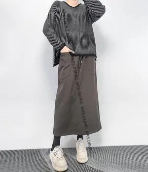 棉混紡微彈後開岔抽繩口袋裙(灰紫)