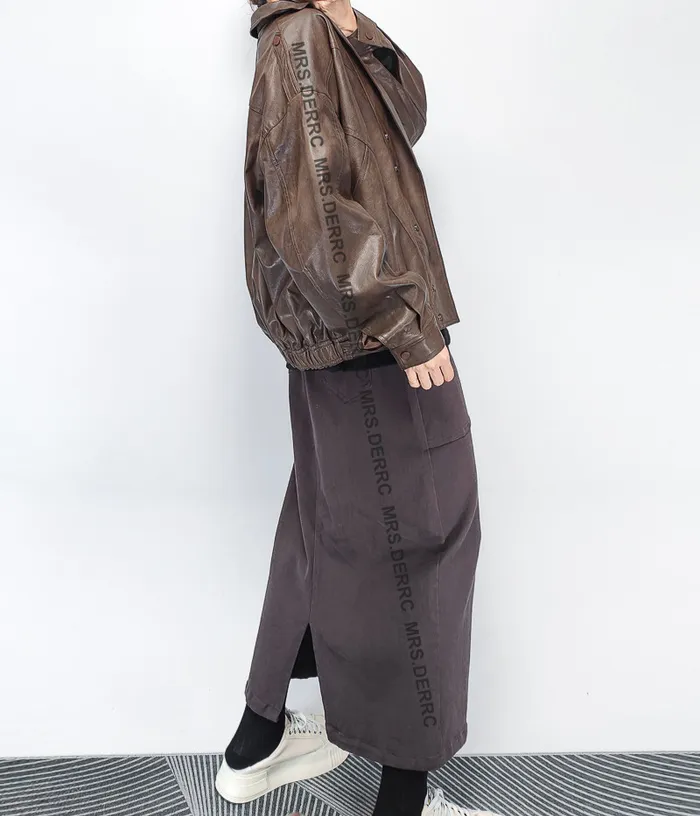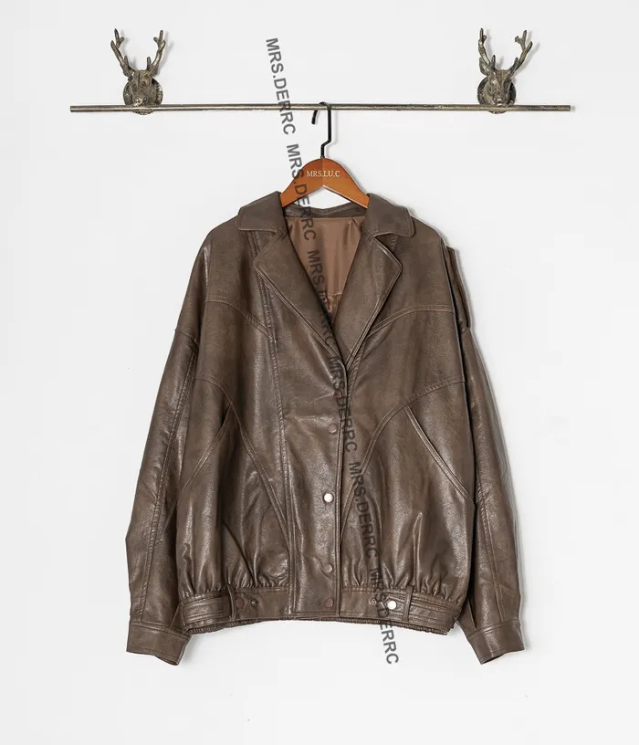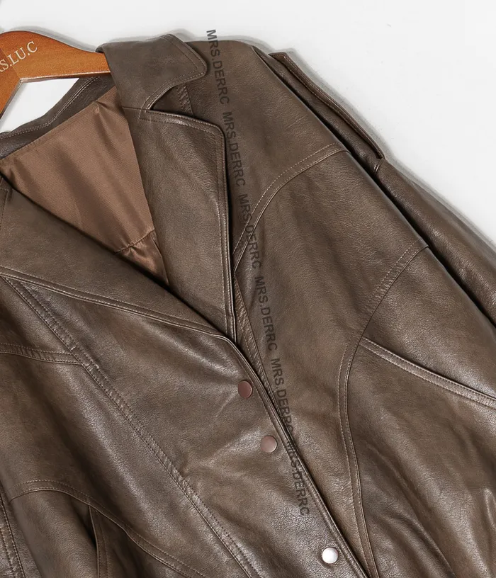 仿皮刷色肩扣騎士翻領口袋外套(咖色)