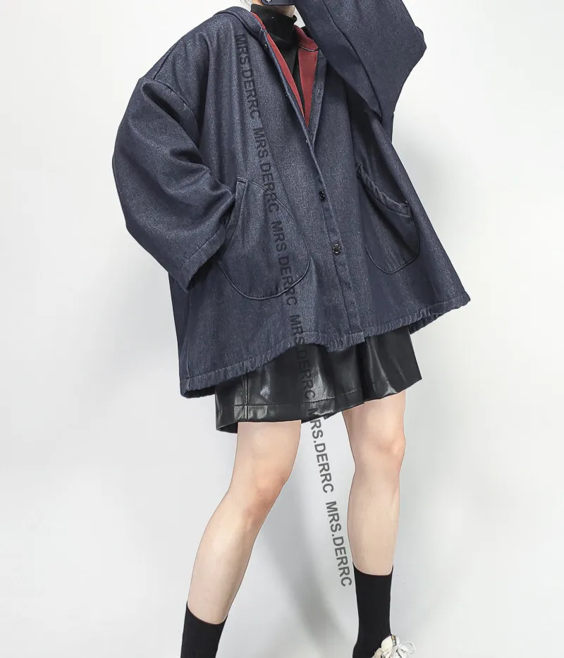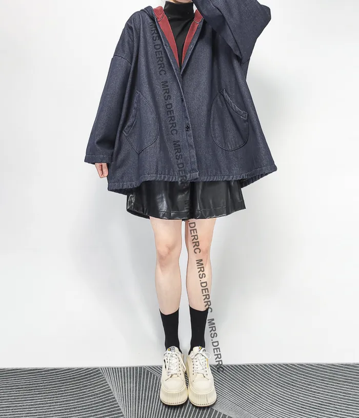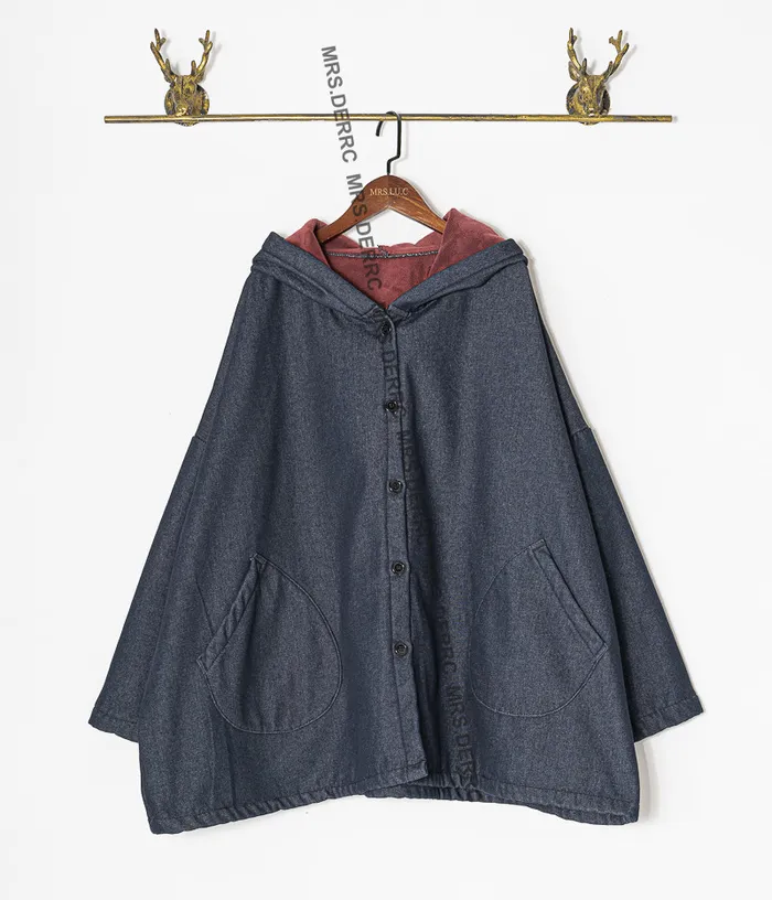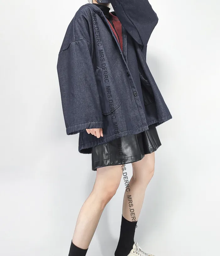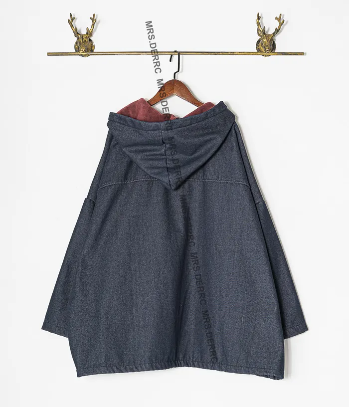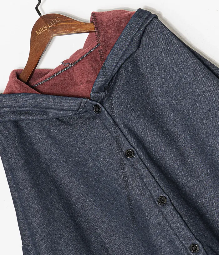 推薦款牛仔內撞色刷絨連帽寬鬆外套