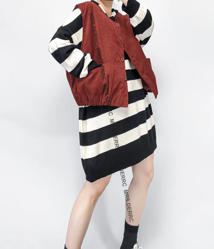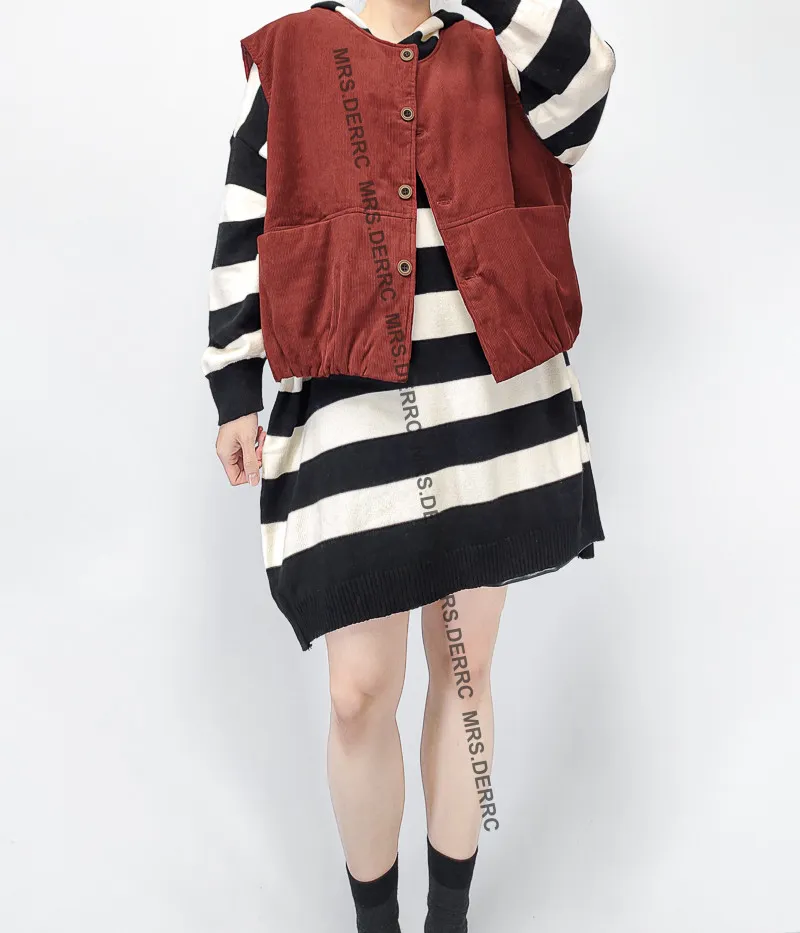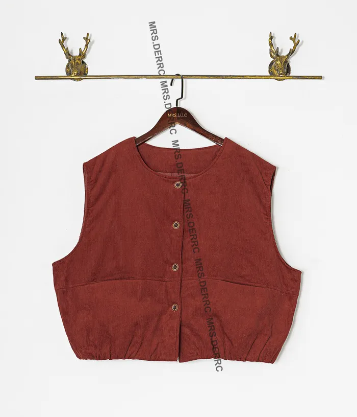 條絨鋪棉開釦寬鬆口袋背心(磚紅)