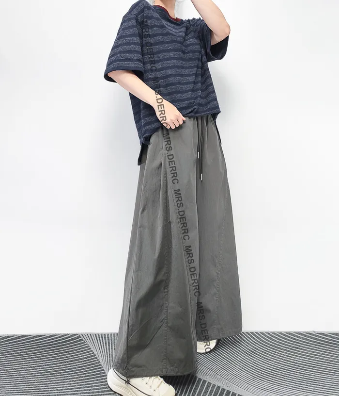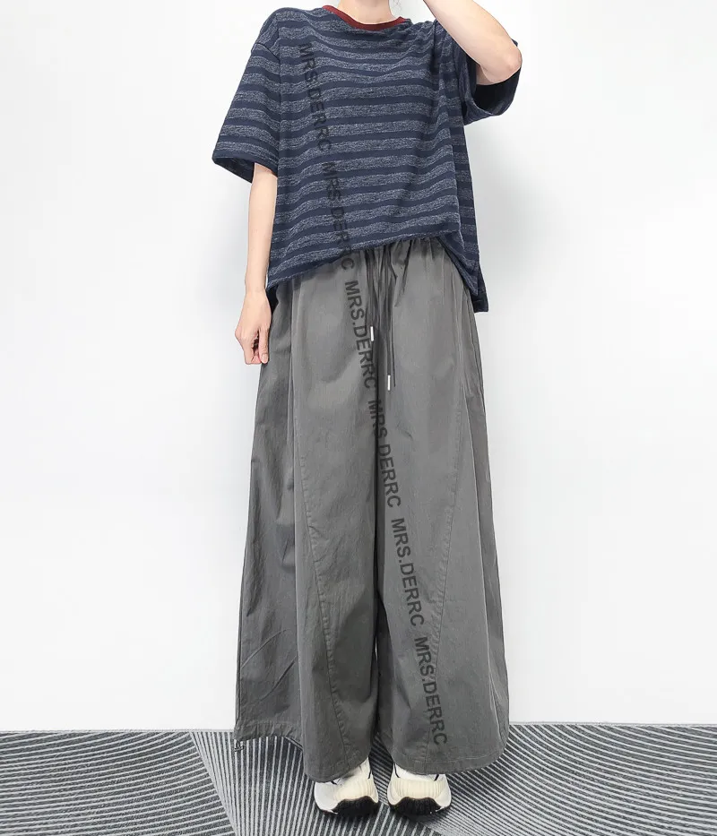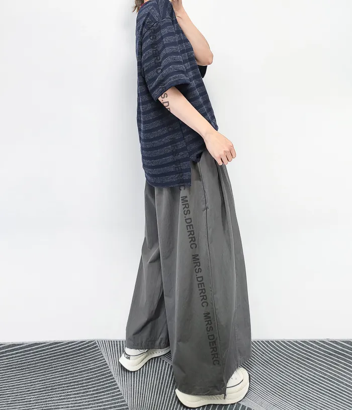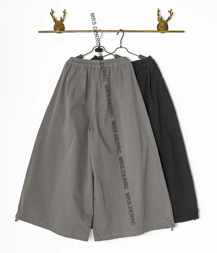 棉質鬆緊抽繩口袋寬褲(灰色)
