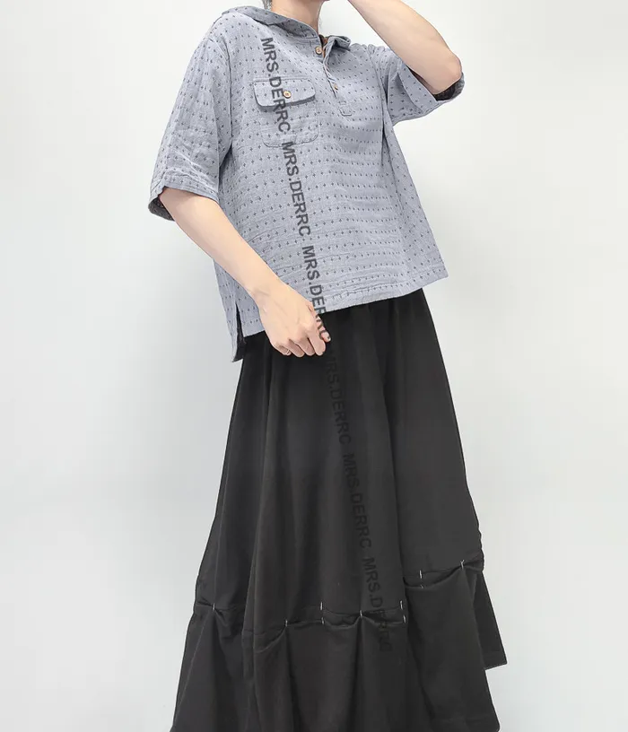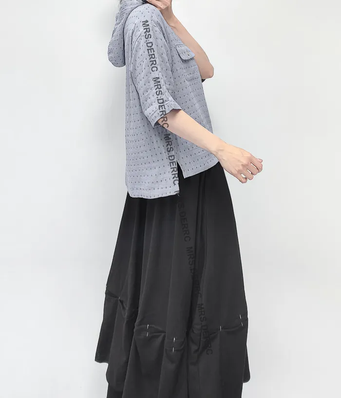 棉質連帽半開釦十字印花小口袋上衣(灰藍)