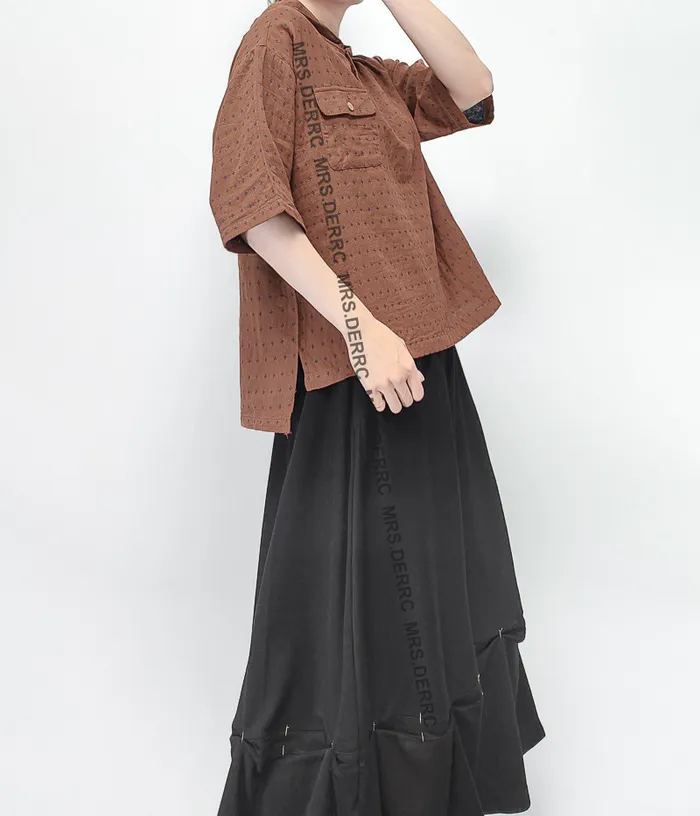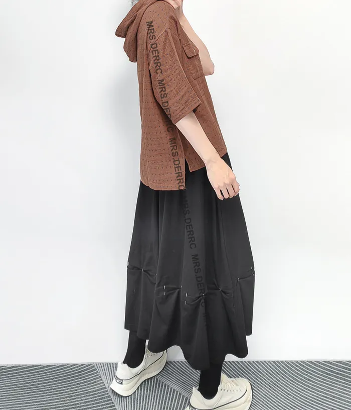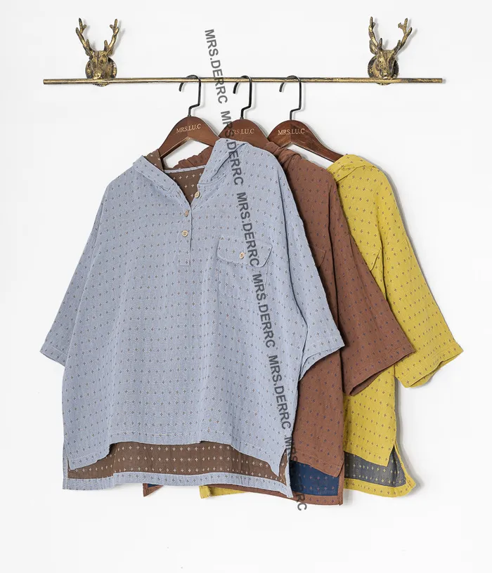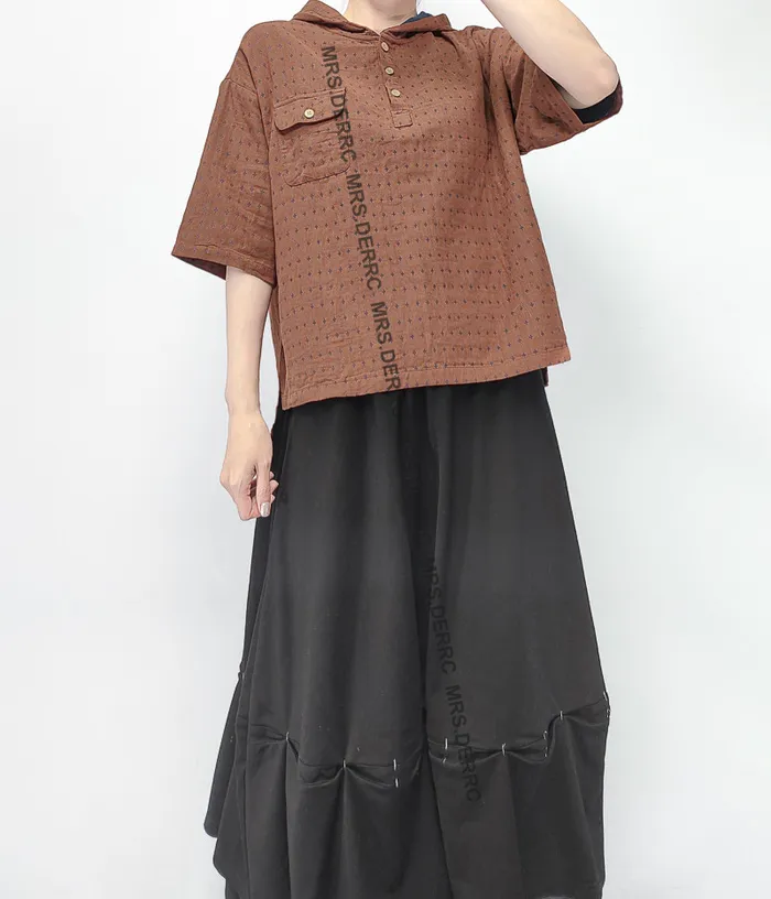 棉質連帽半開釦十字印花小口袋上衣(咖色)