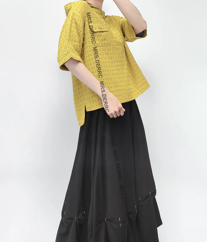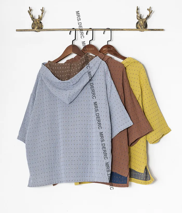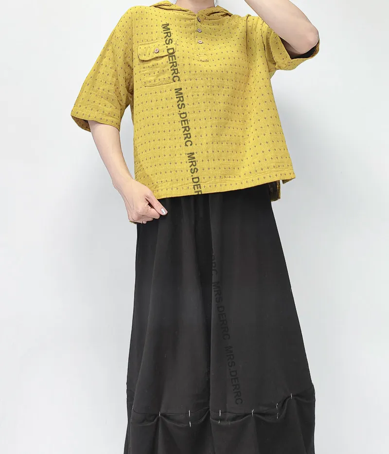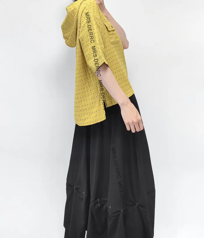 棉質連帽半開釦十字印花小口袋上衣(芥黃)