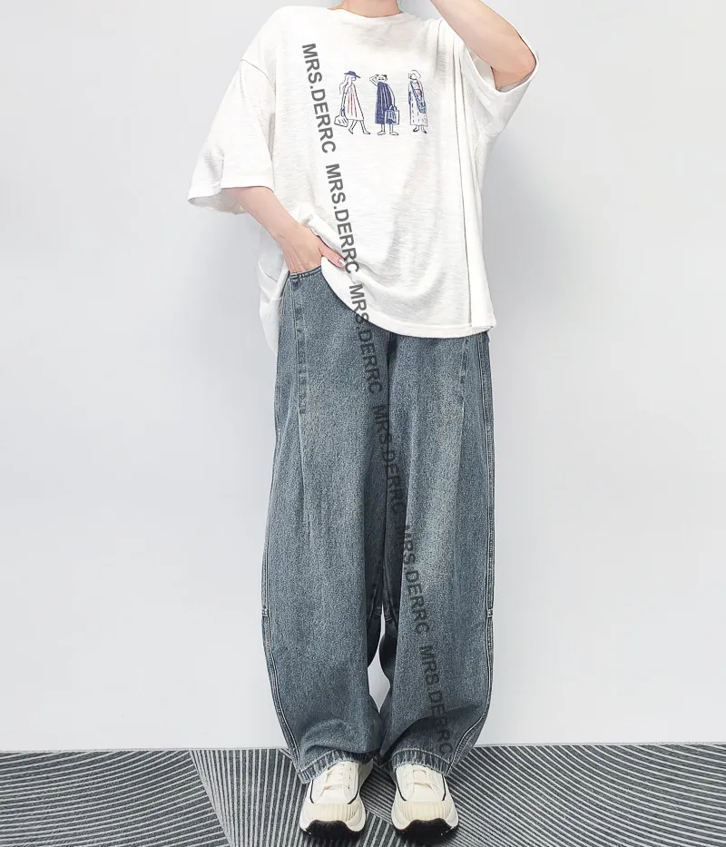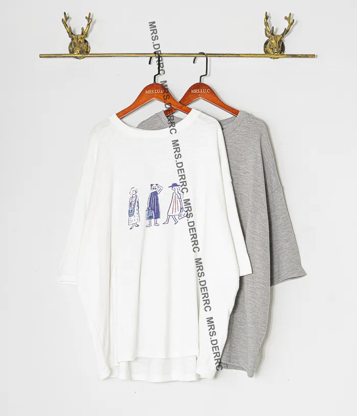 棉質垂墜感三個女孩寬鬆上衣(白色)