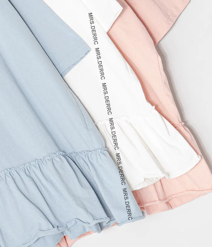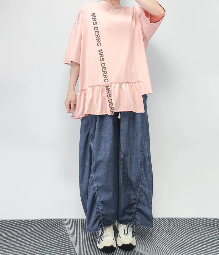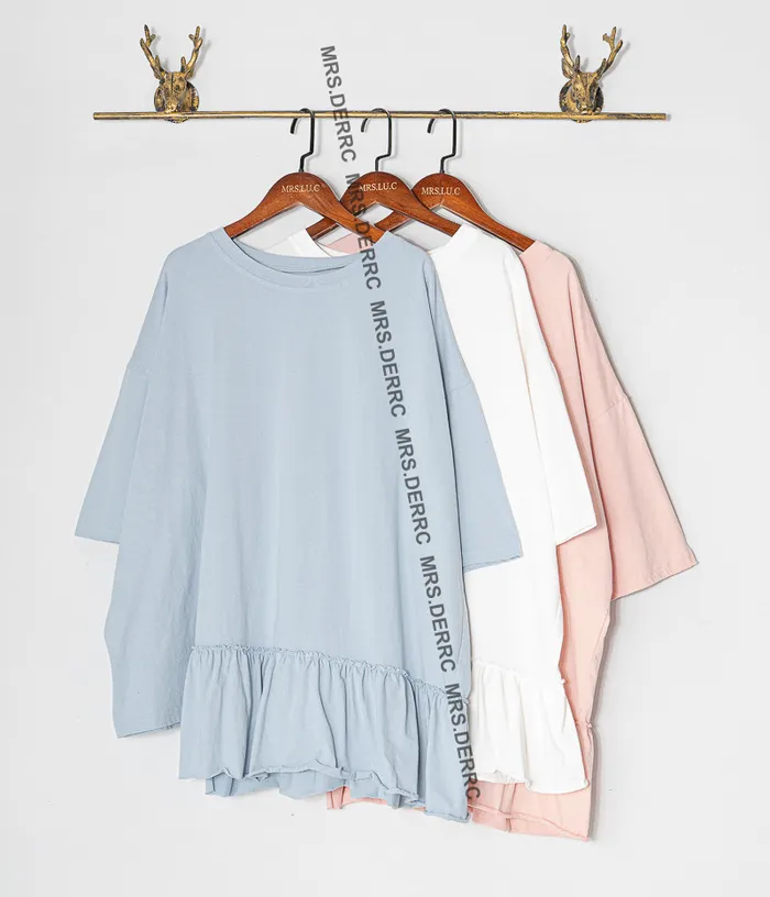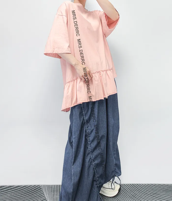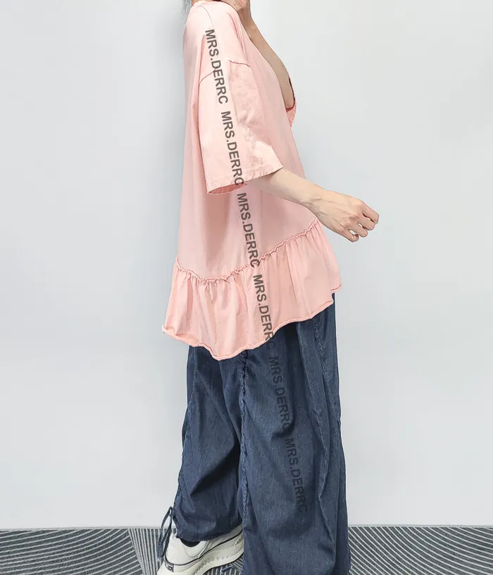 棉質下擺不規則荷葉寬鬆上衣(淺粉)