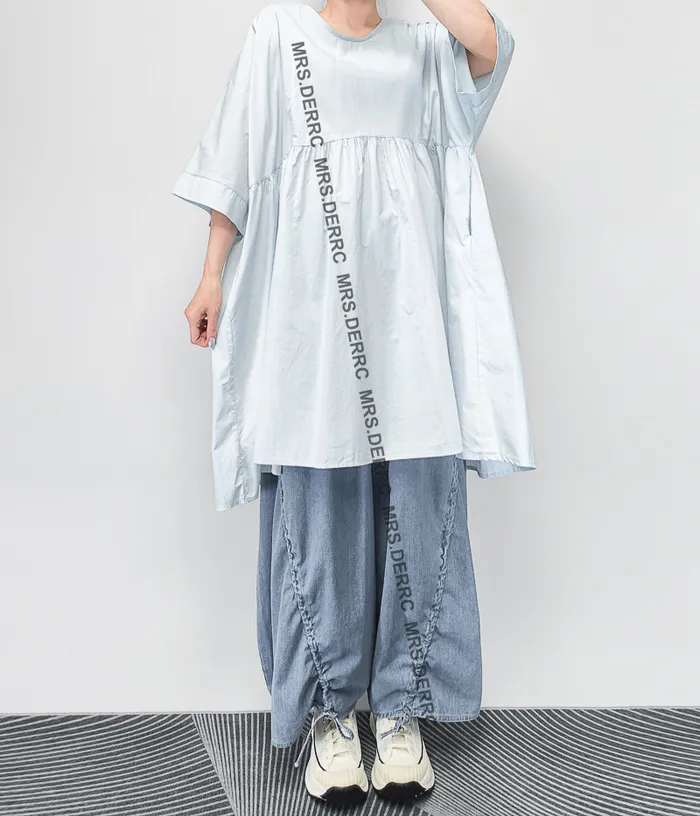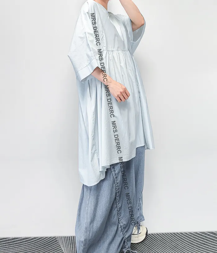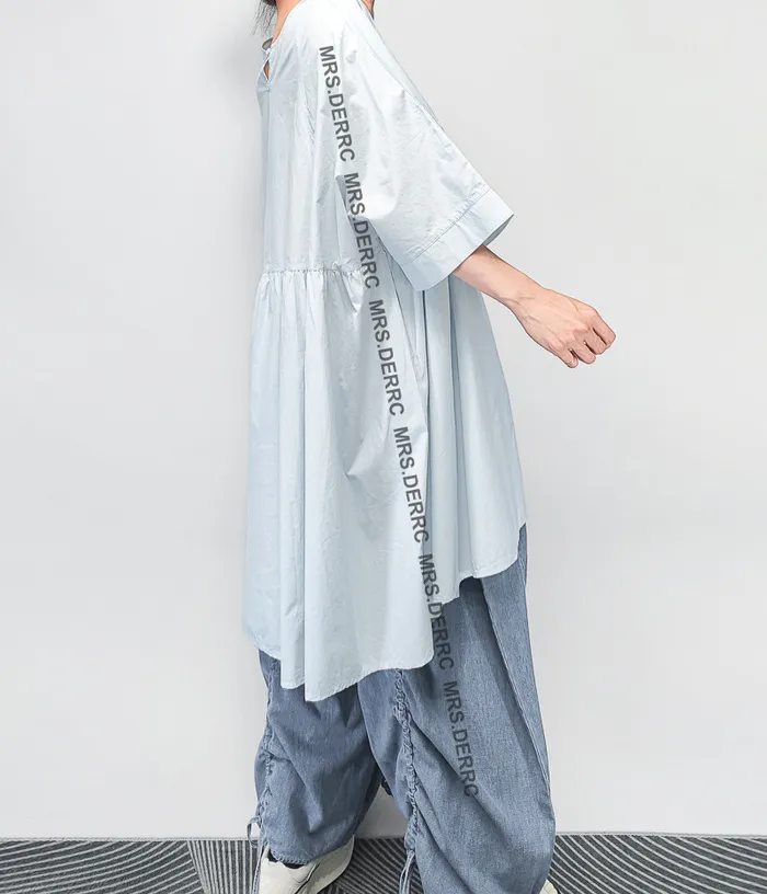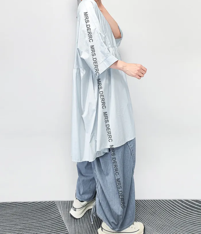 棉質後開釦寬鬆口袋長版上衣(淺藍)