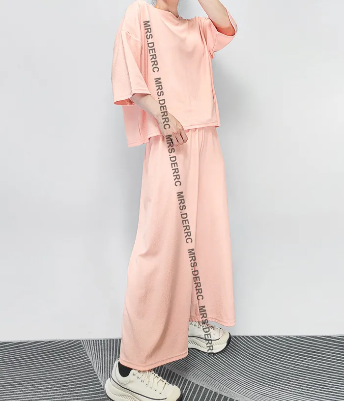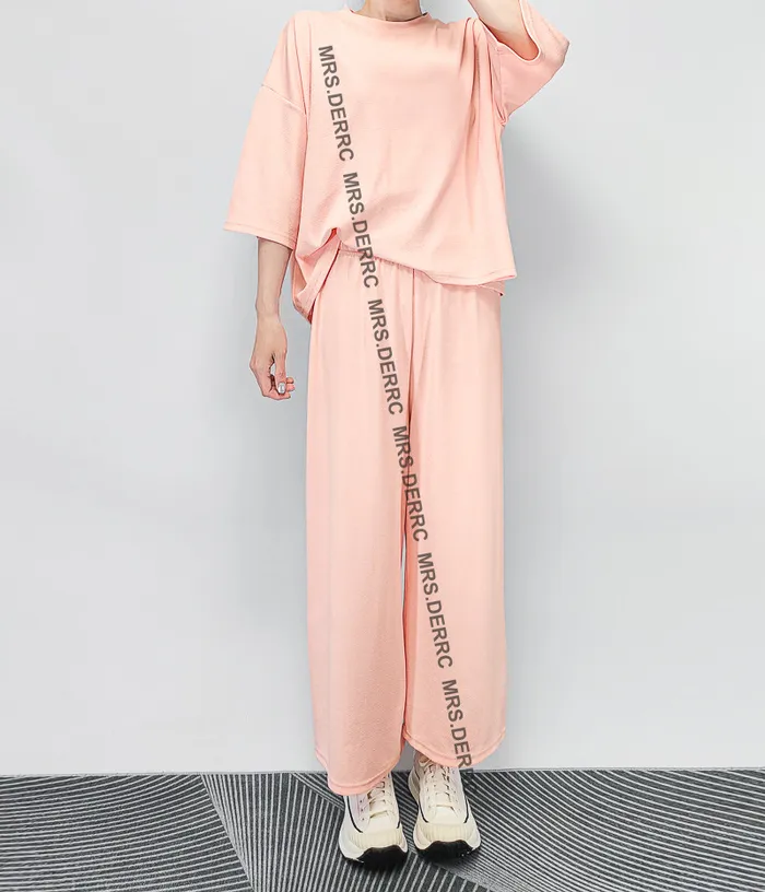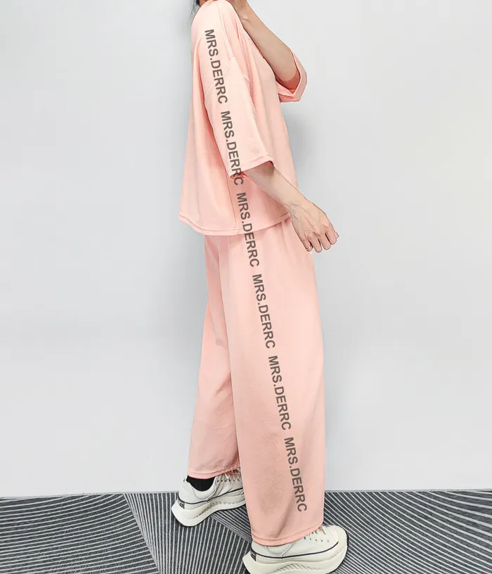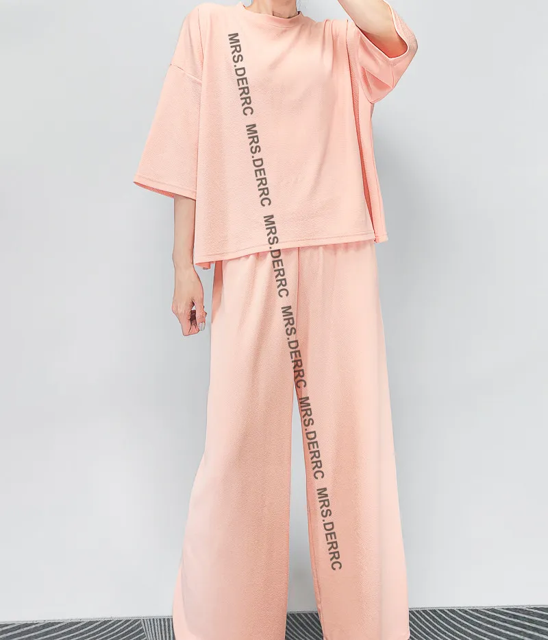 棉混紡上衣+褲子休閒套裝(粉橘)
