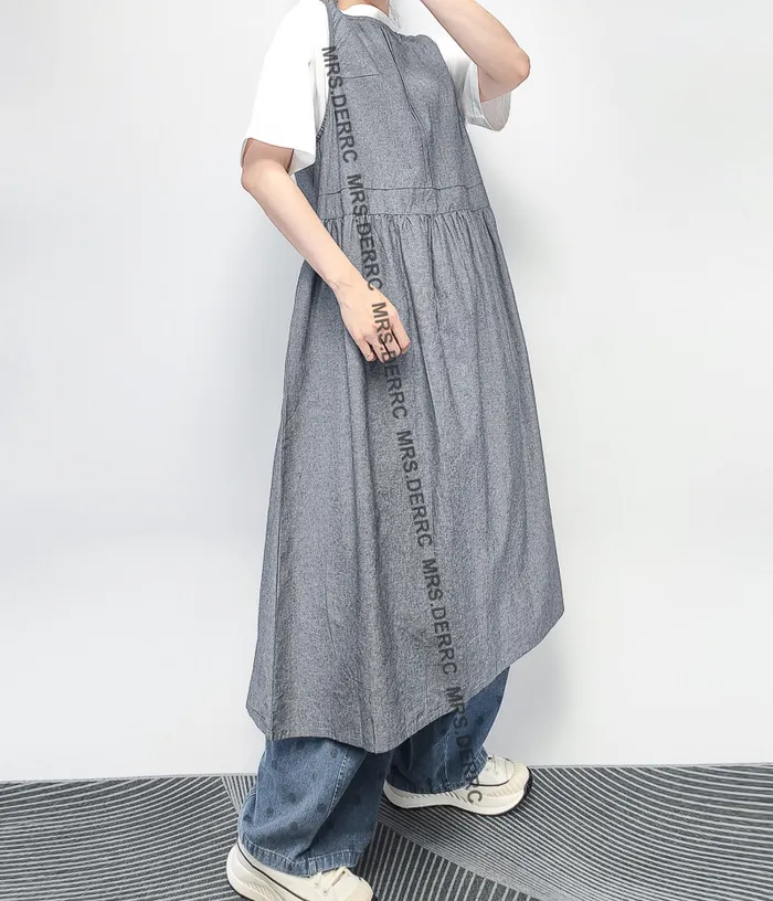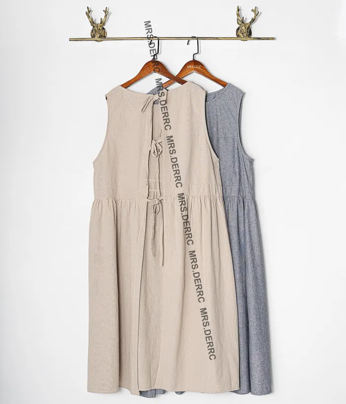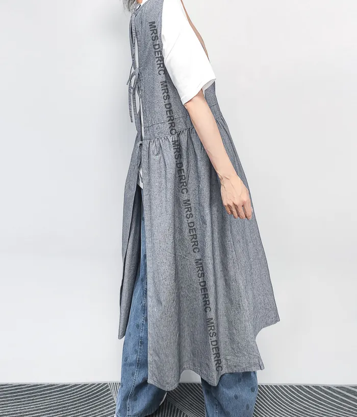 棉麻後綁帶背心外罩(灰藍)