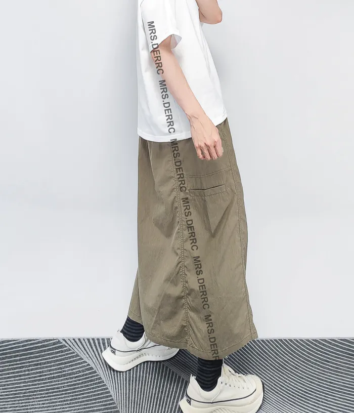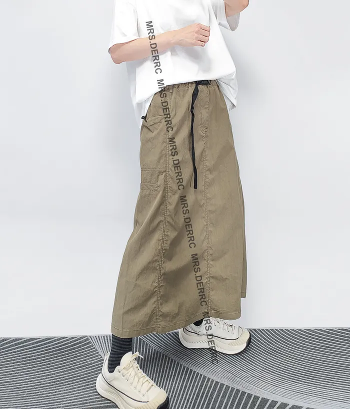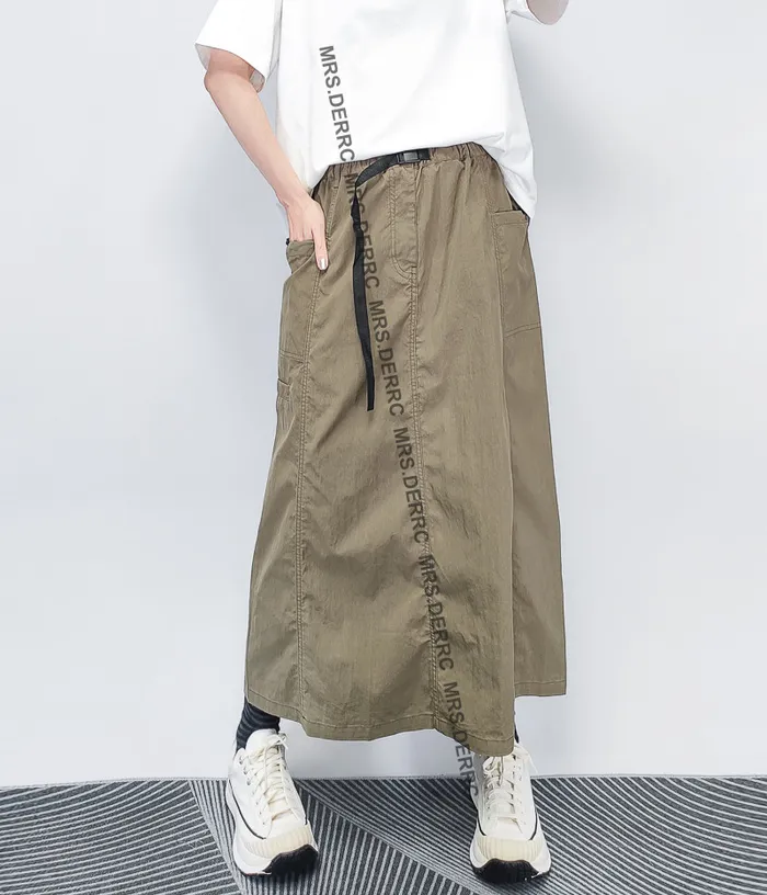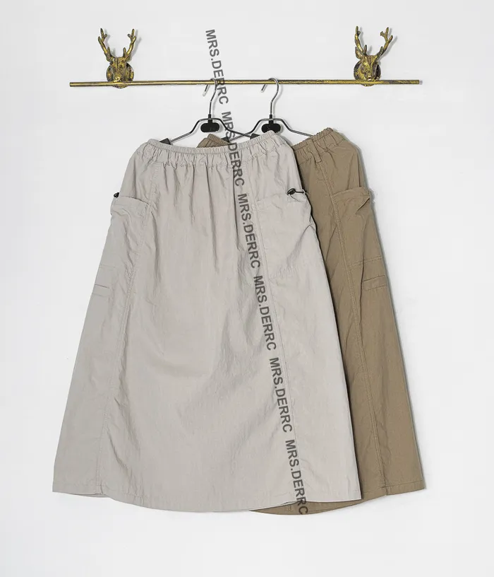 混紡開釦鬆緊抽繩口袋裙(綠色)