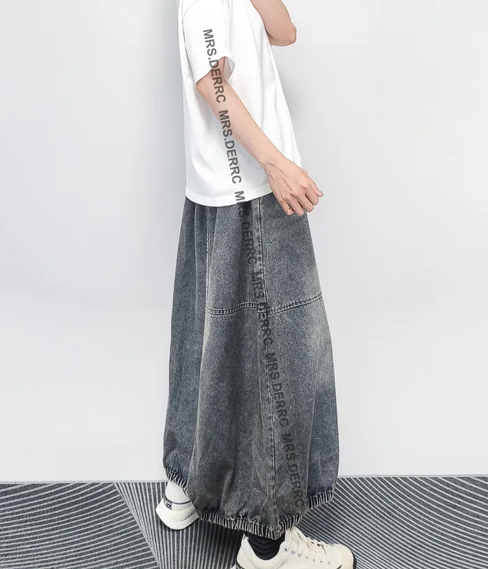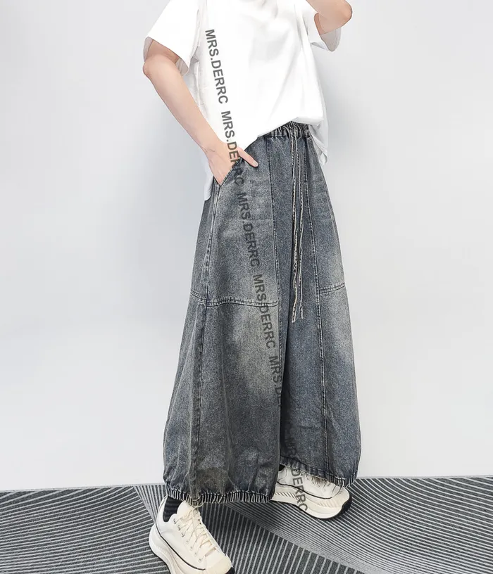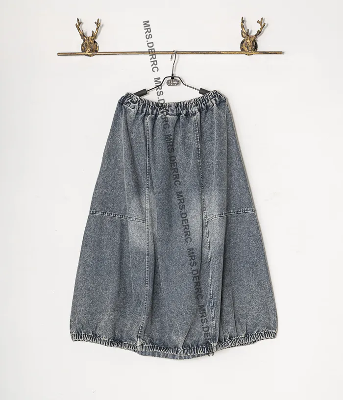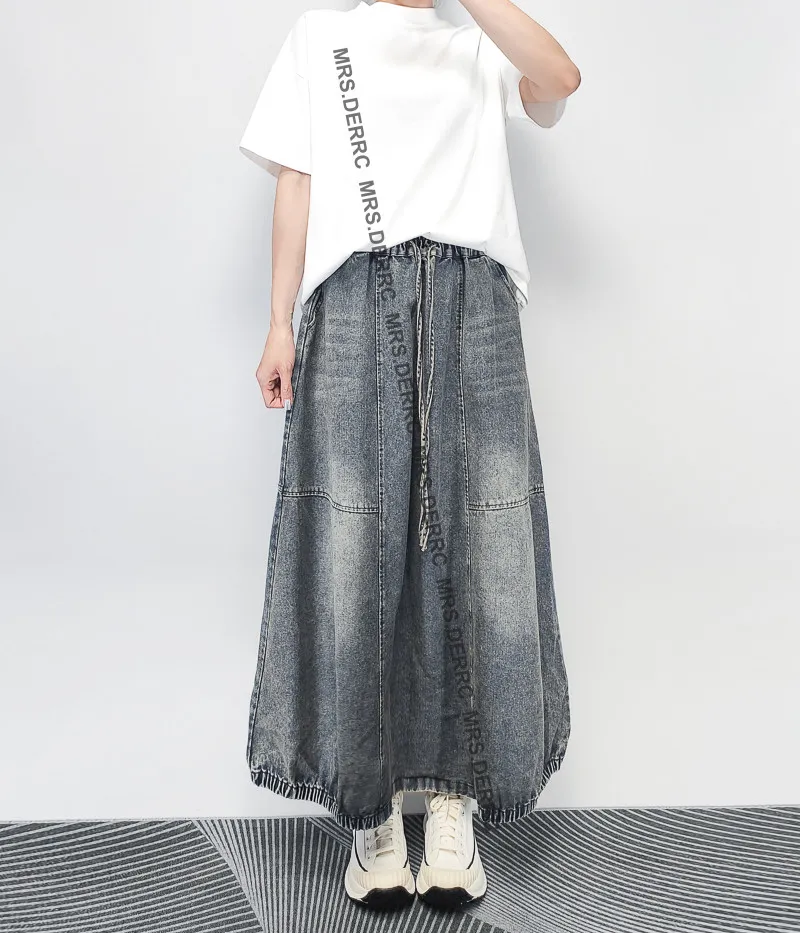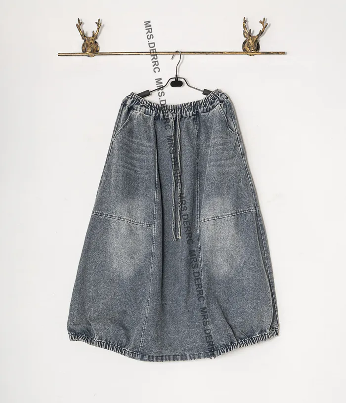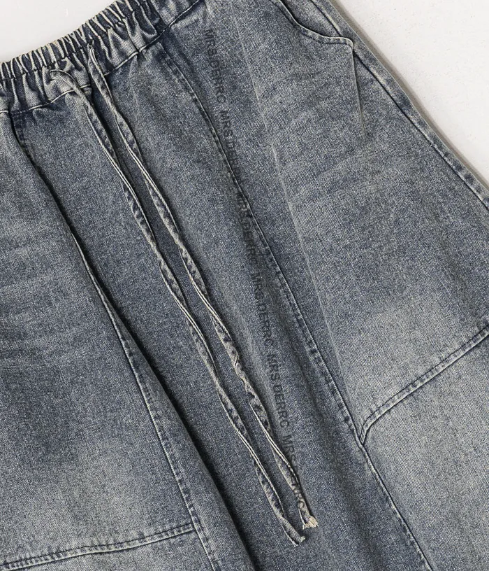 挺布水洗牛仔抽繩下擺鬆緊口袋裙