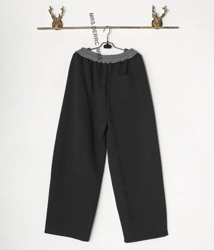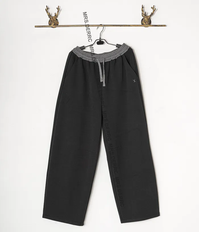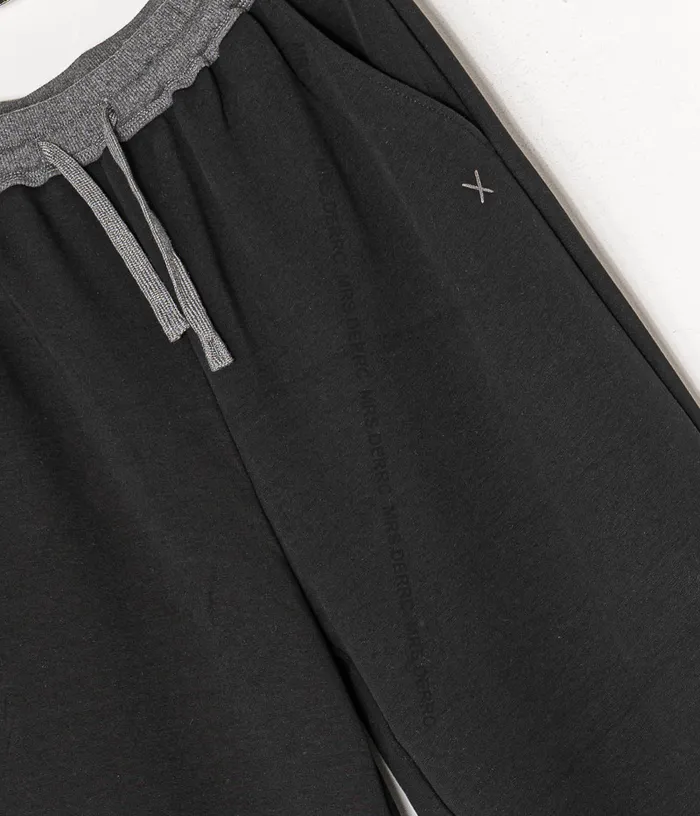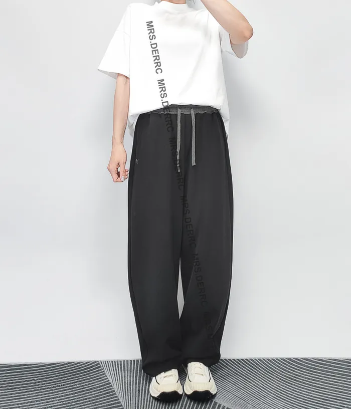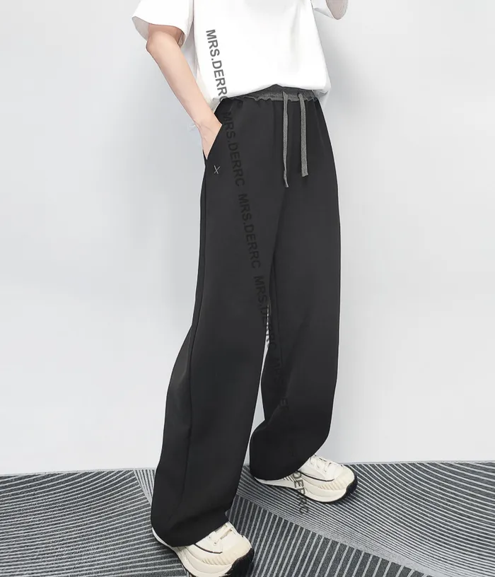 棉混紡撞色褲頭抽繩休閒口袋褲(黑色)