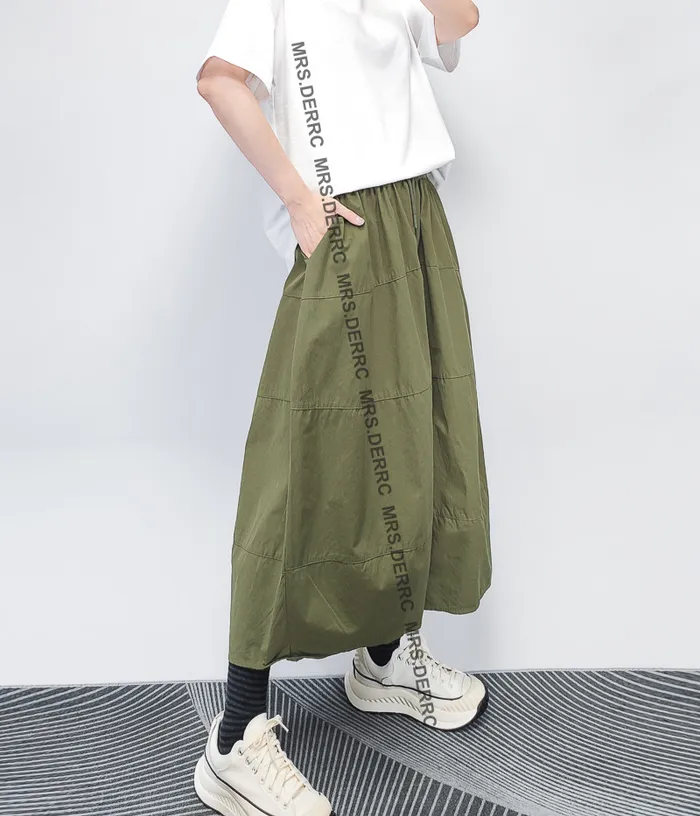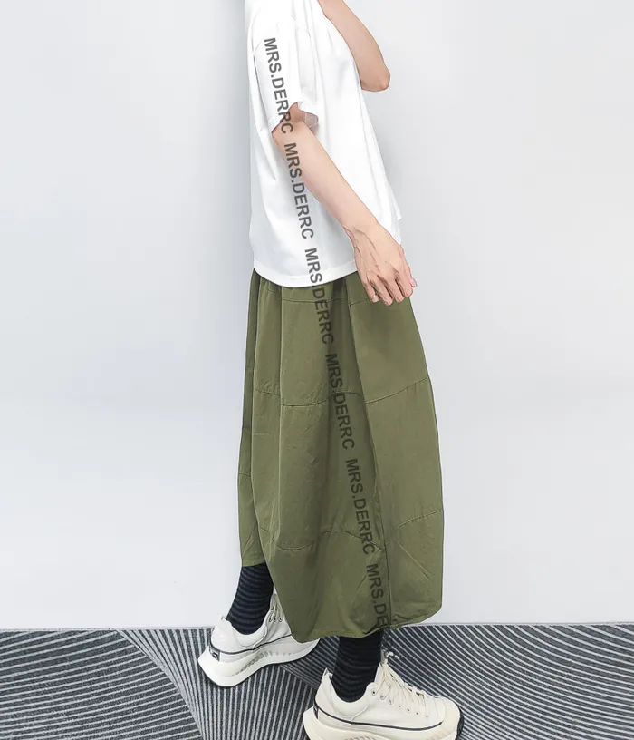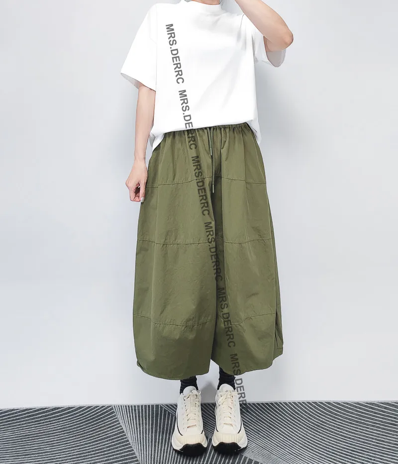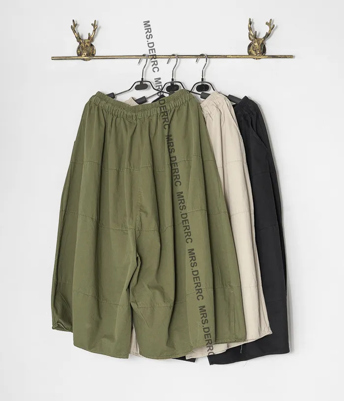 棉質抽繩剪裁寬鬆口袋褲(綠色)