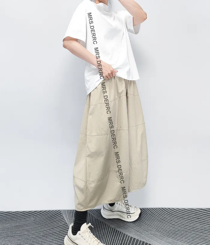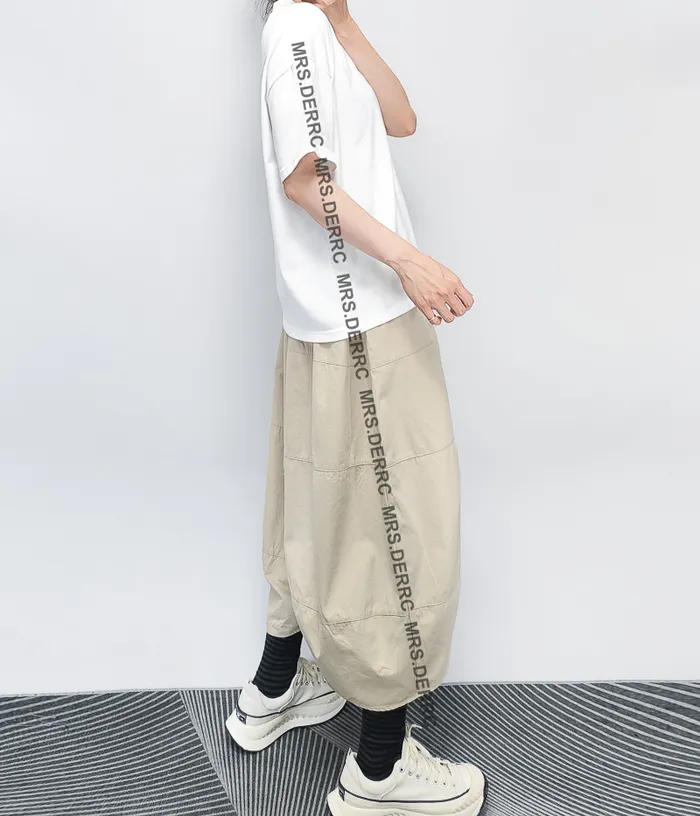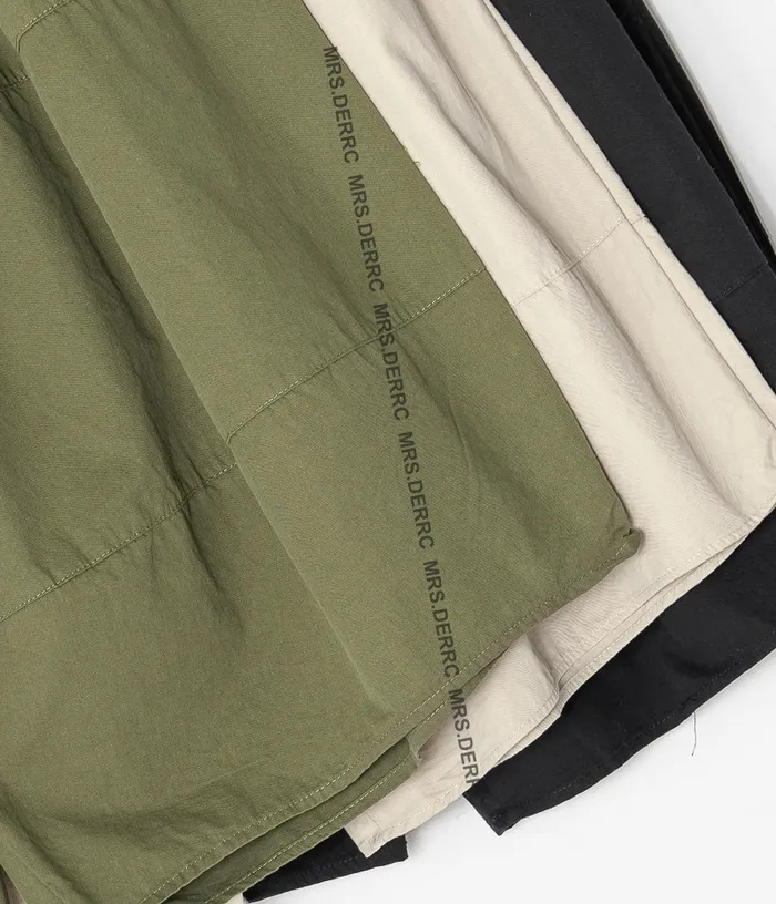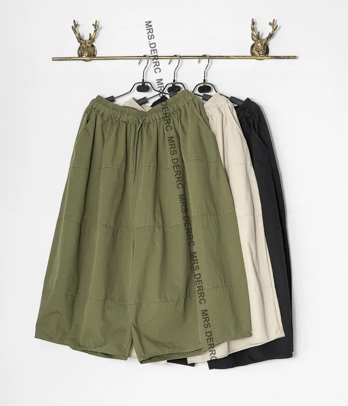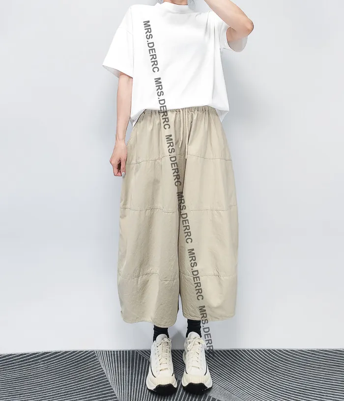 棉質抽繩剪裁寬鬆口袋褲(淺卡其)