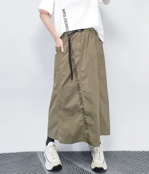混紡開釦鬆緊抽繩口袋裙(綠色)