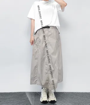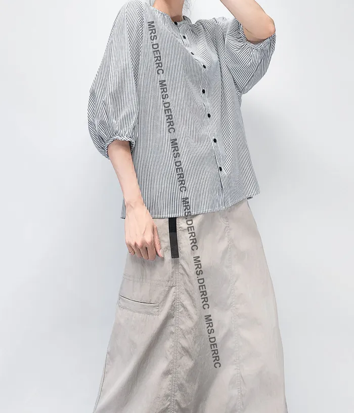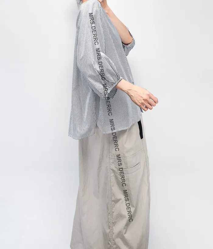 混紡開釦鬆緊抽繩口袋裙(淺灰)
