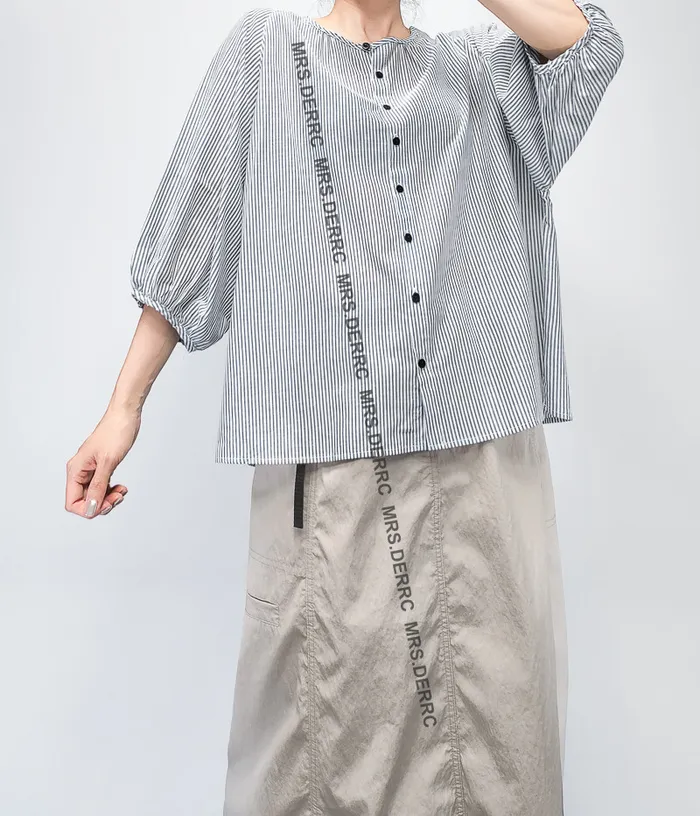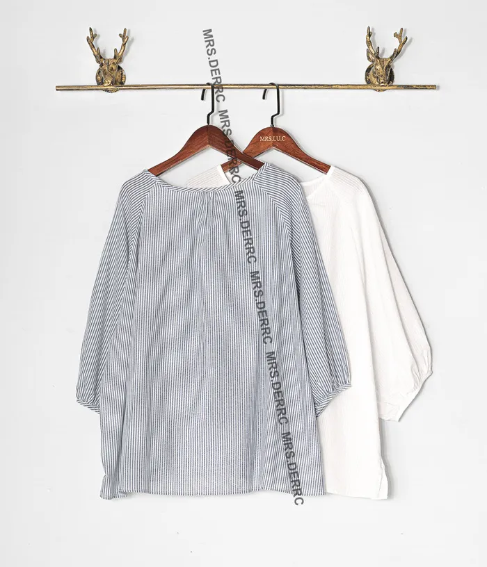 棉質寬袖開釦上衣(藍條)