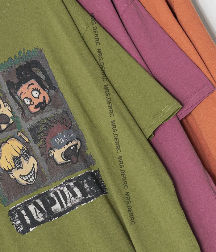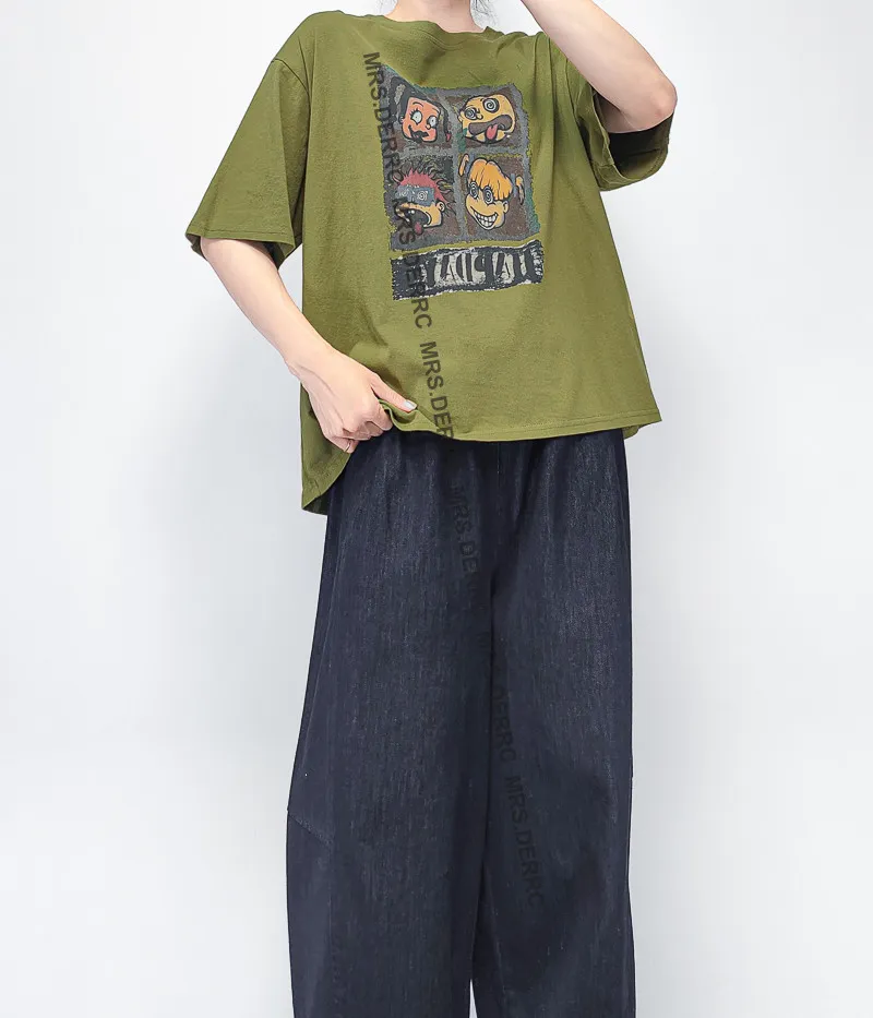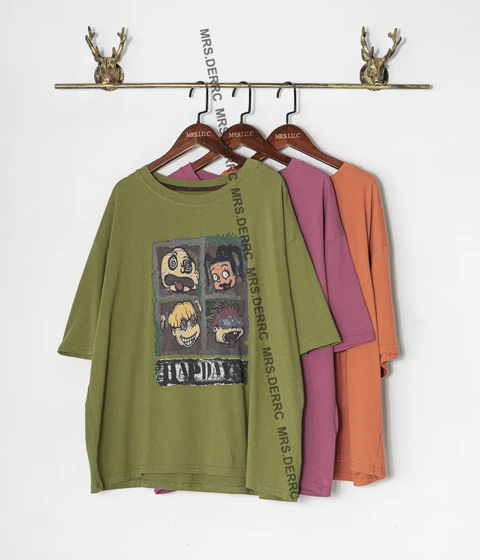 棉混紡四格塗鴉印花上衣(綠色)