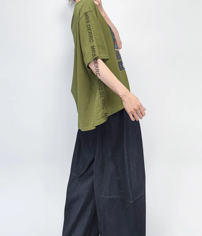 牛仔鬆緊抽繩簡約口袋褲