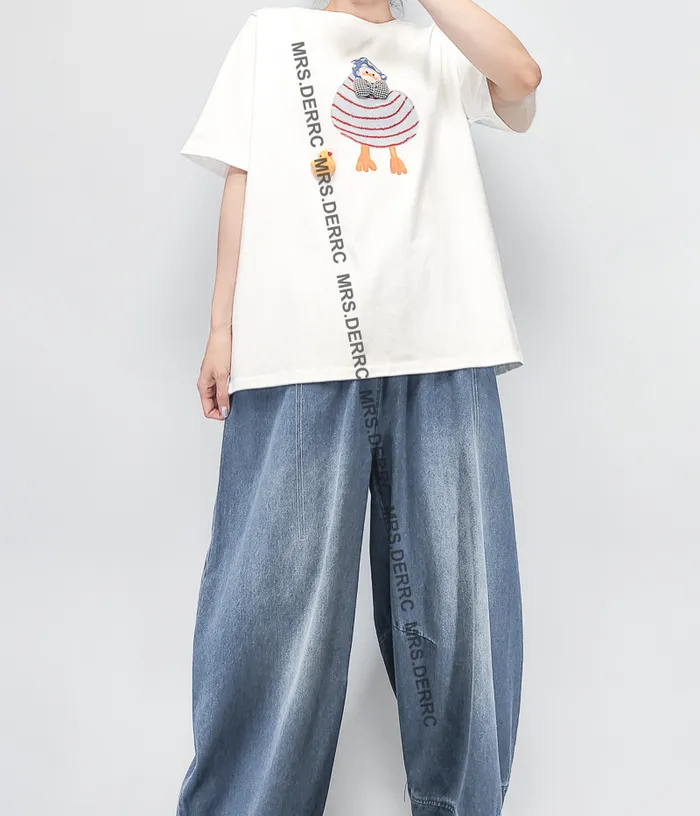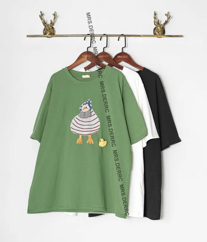 棉混紡包頭巾鴨鴨帶立體小鴨上衣(白色)