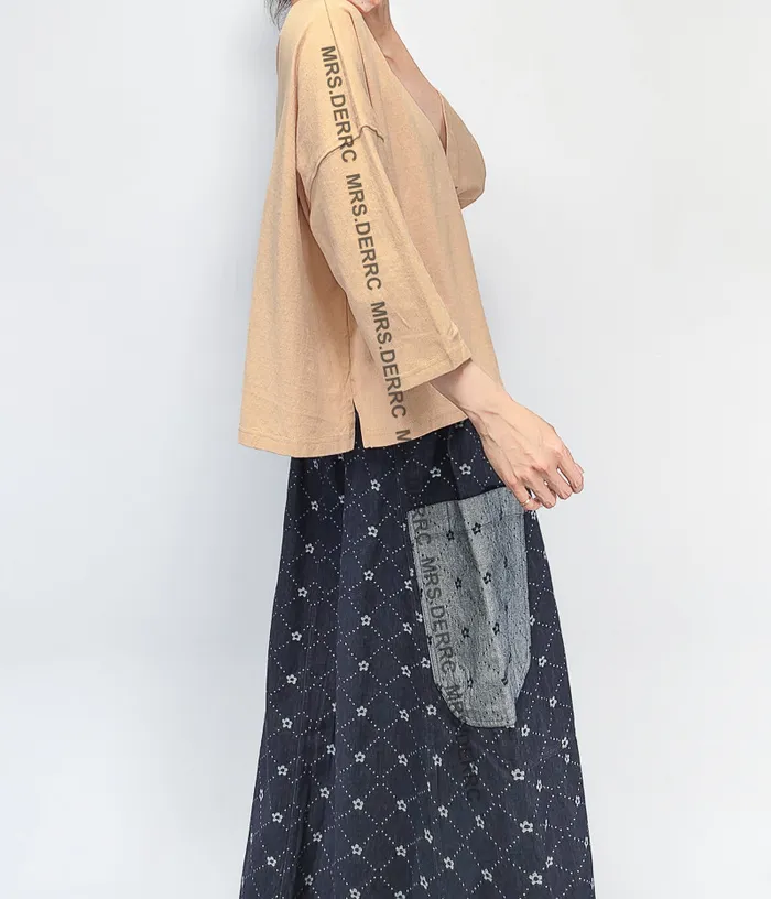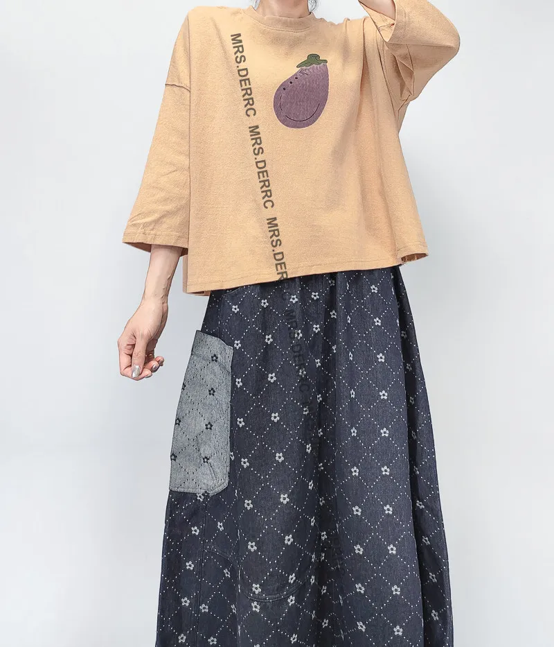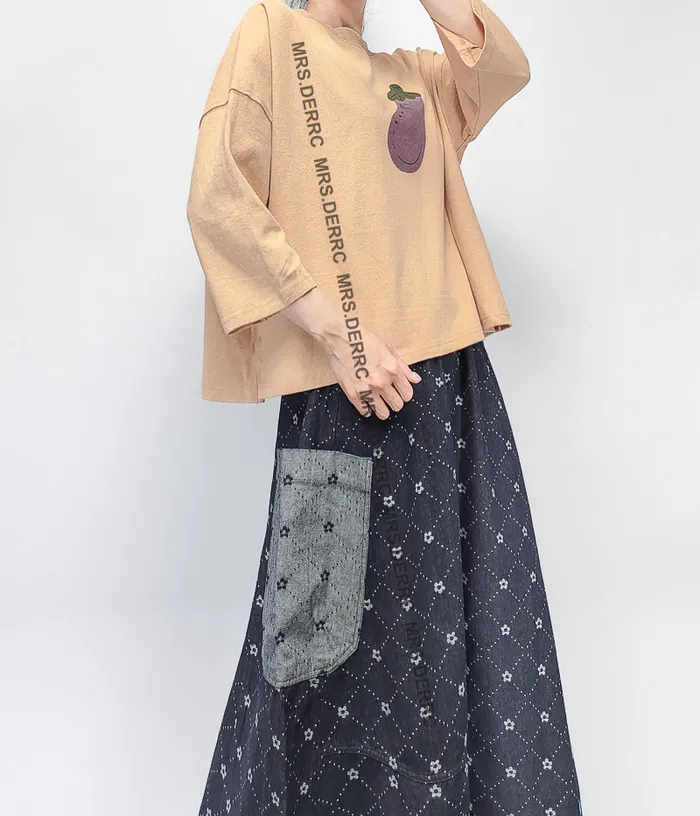 挺布牛仔印花不對稱口袋裙