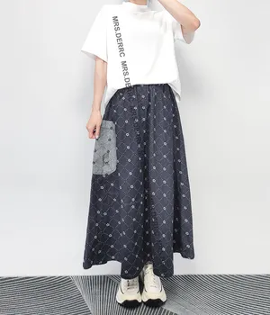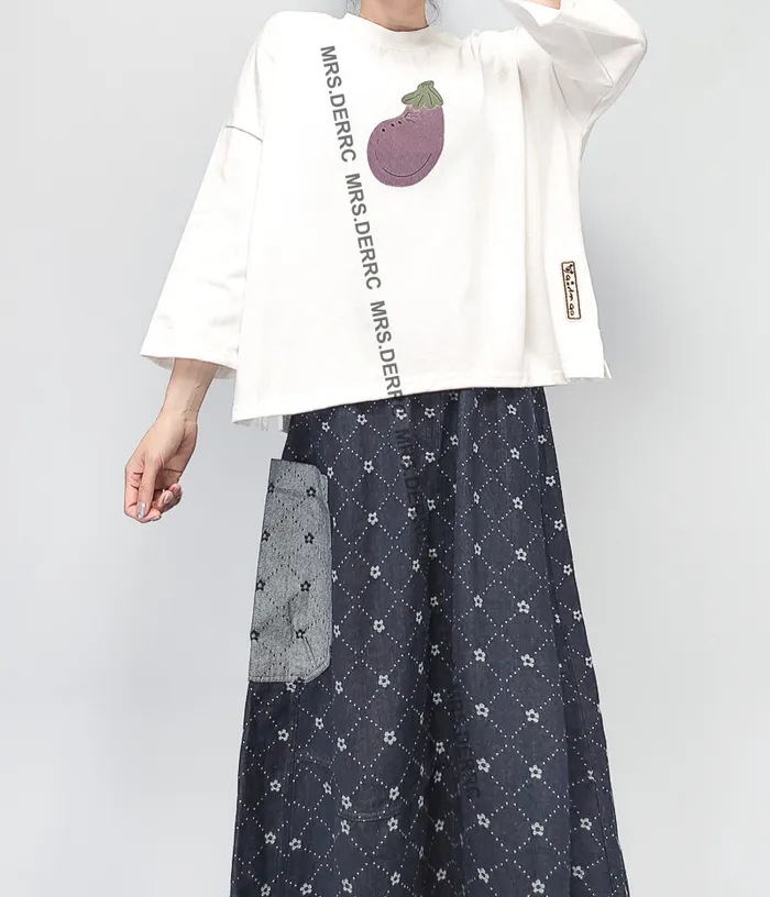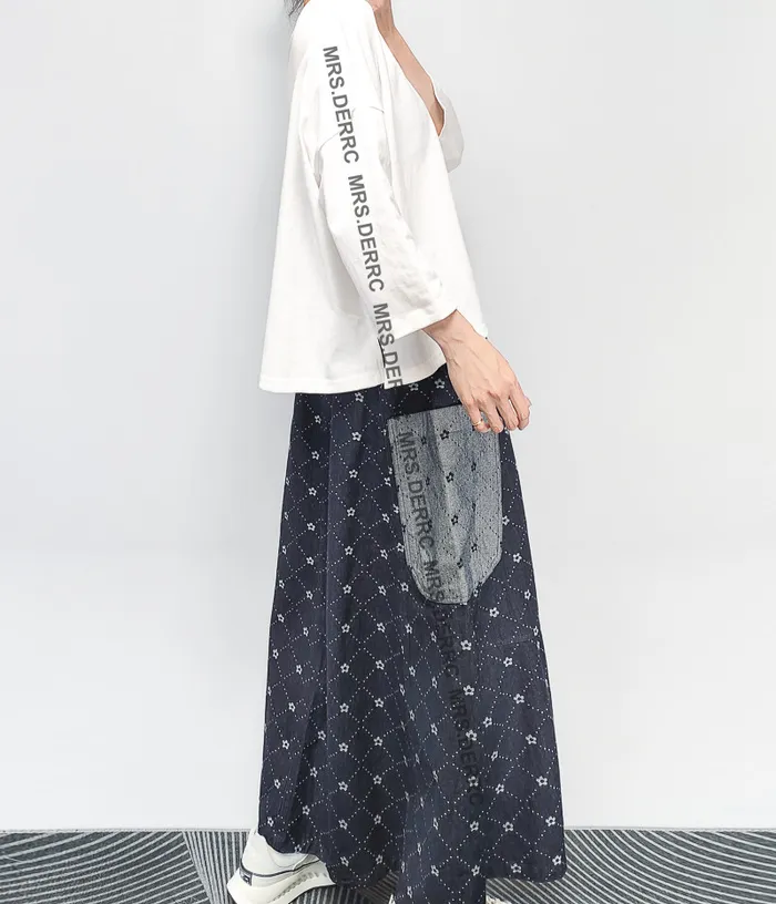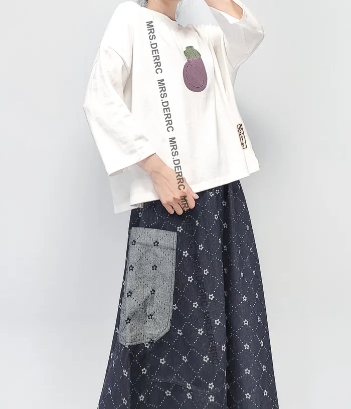 挺布牛仔印花不對稱口袋裙