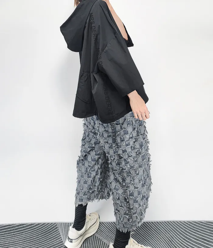 牛仔色塊流蘇造型口袋褲