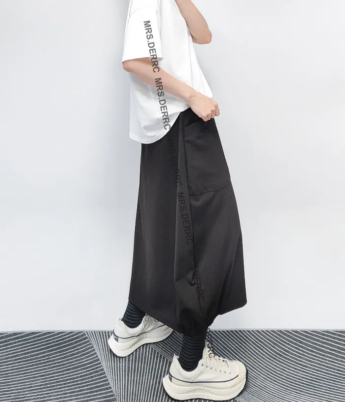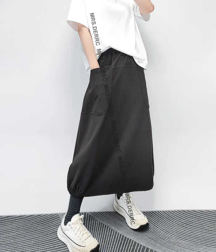棉混紡鬆緊簡約百搭造型口袋裙(黑色)