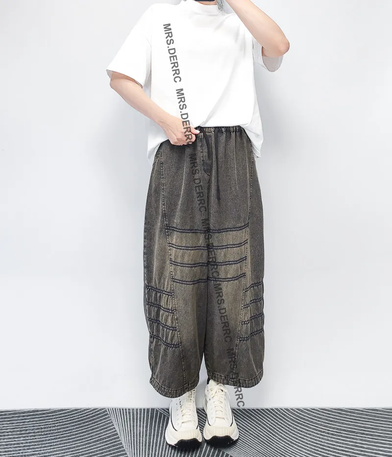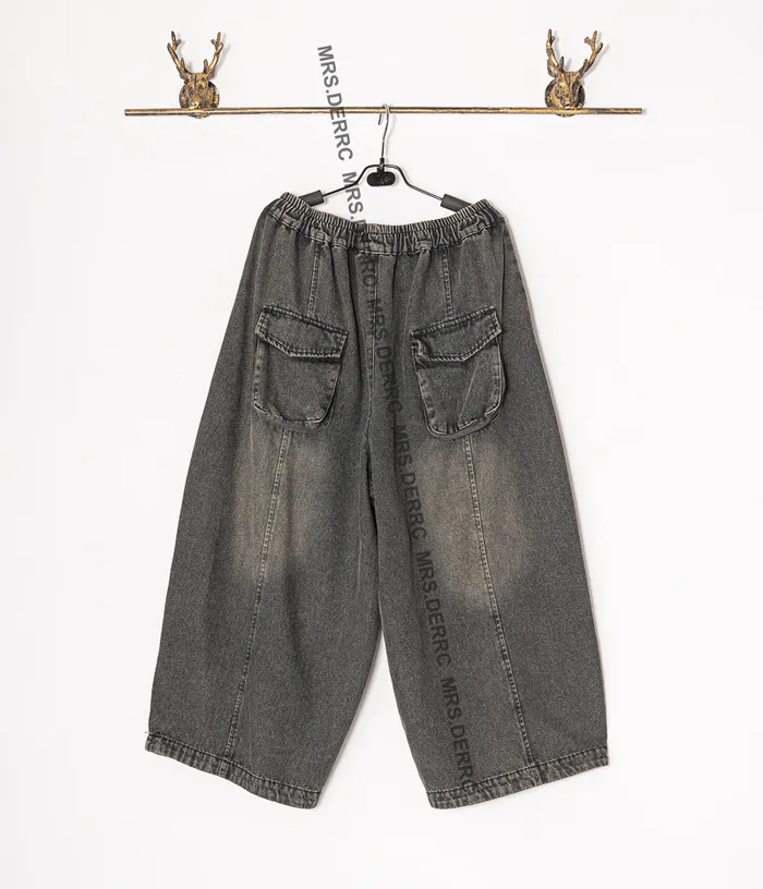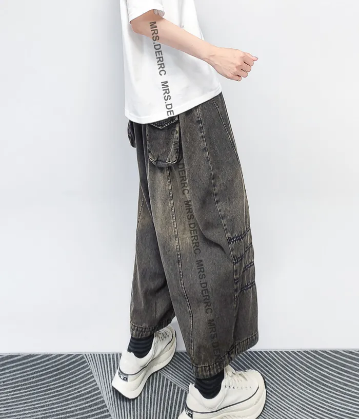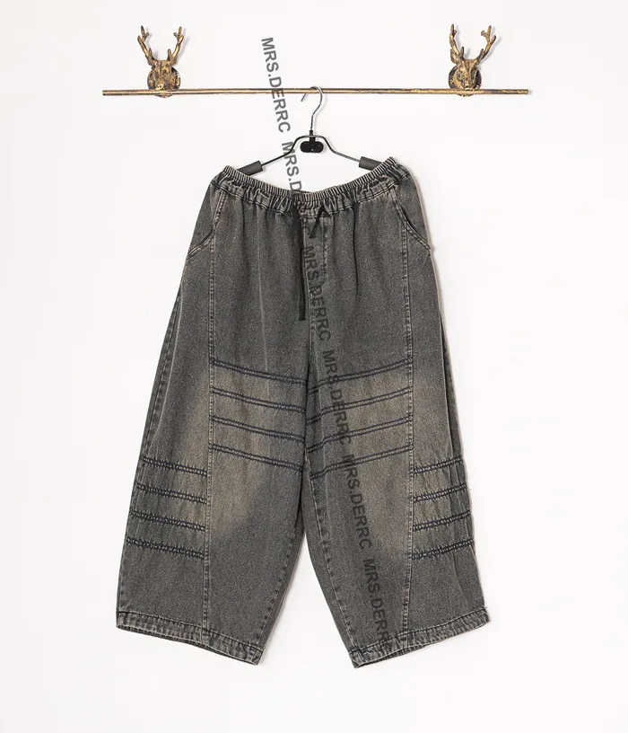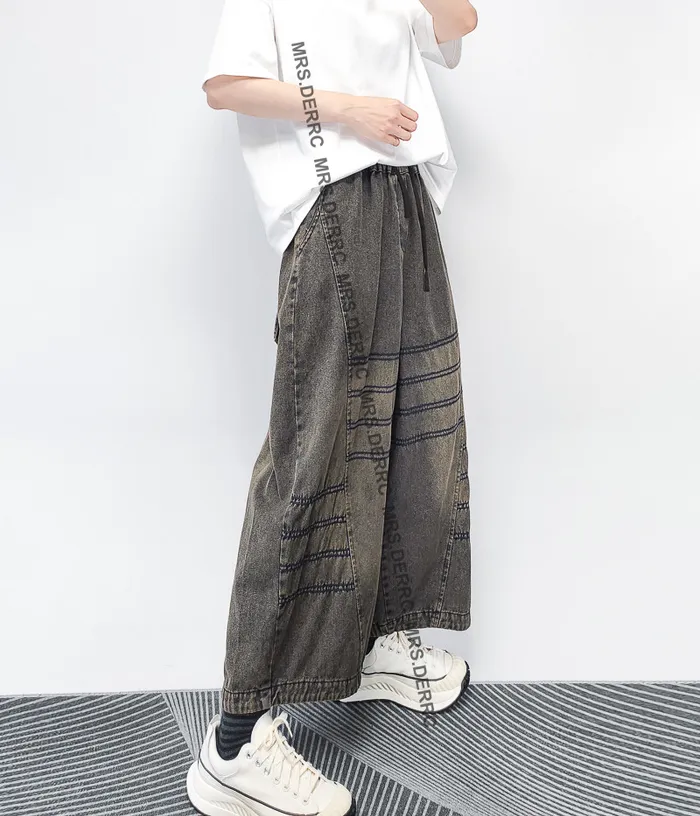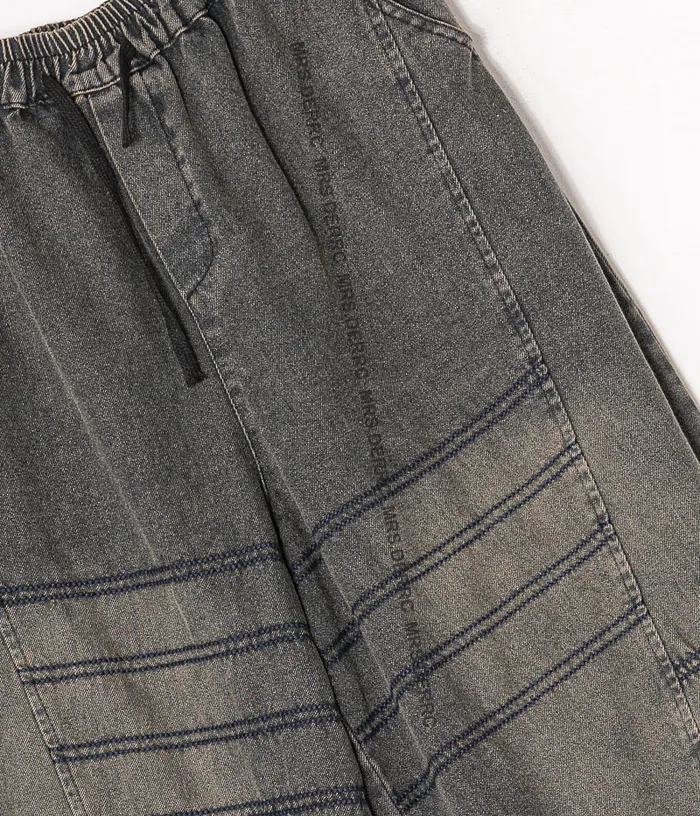 水洗牛仔拚接縫線口袋褲
