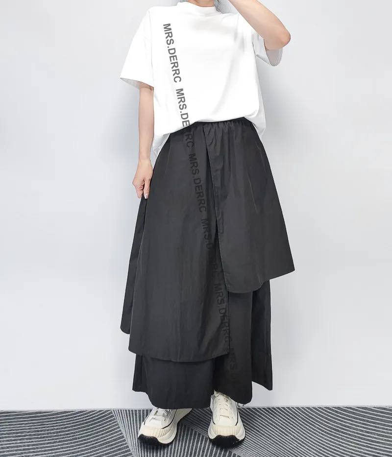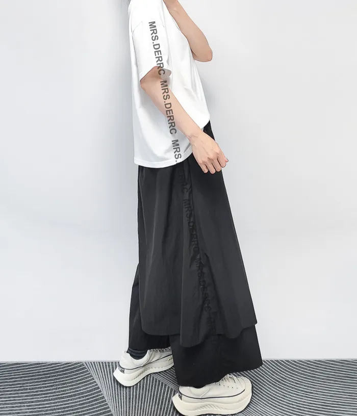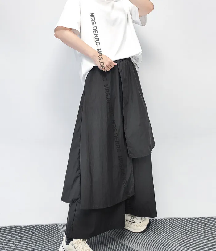 棉混紡鬆緊不對稱色塊拼接口袋褲(黑色)