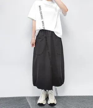 棉混紡鬆緊簡約百搭造型口袋裙(黑色)