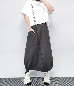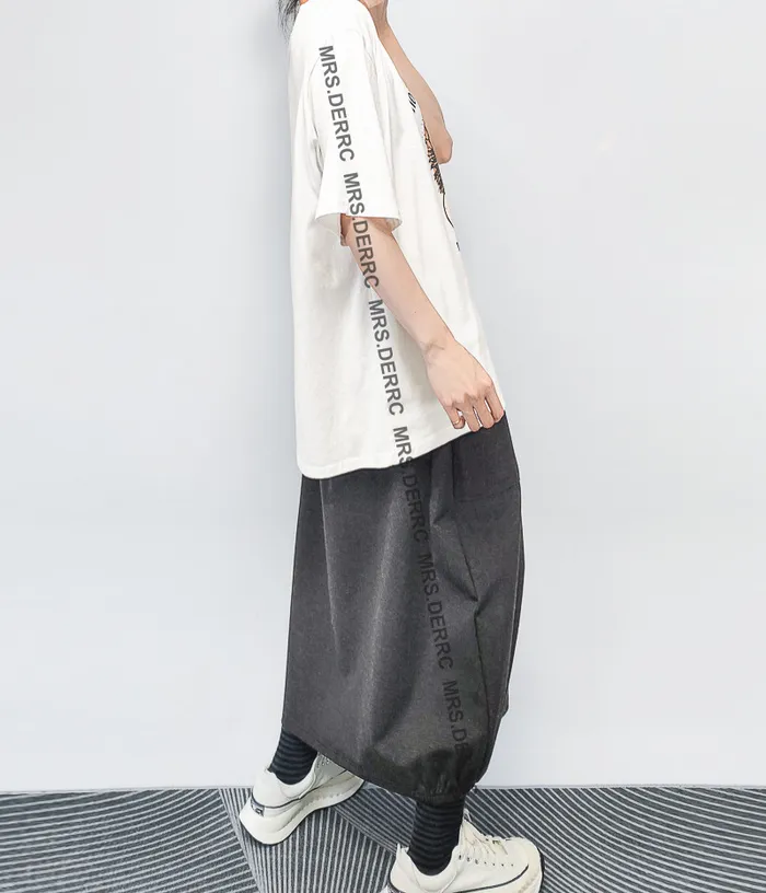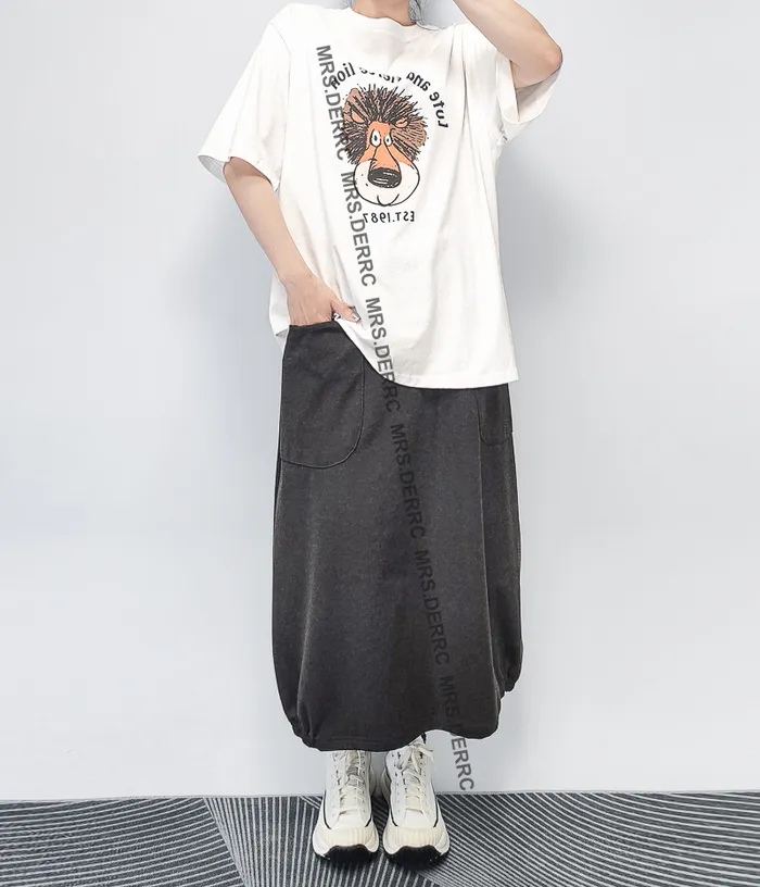棉混紡鬆緊簡約百搭造型口袋裙(灰色)