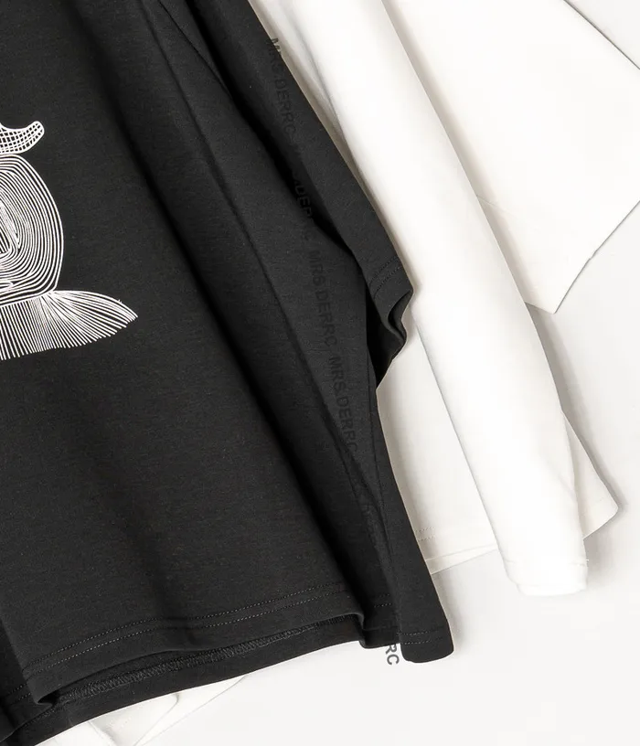 棉混紡抽象人物上衣(白色)
