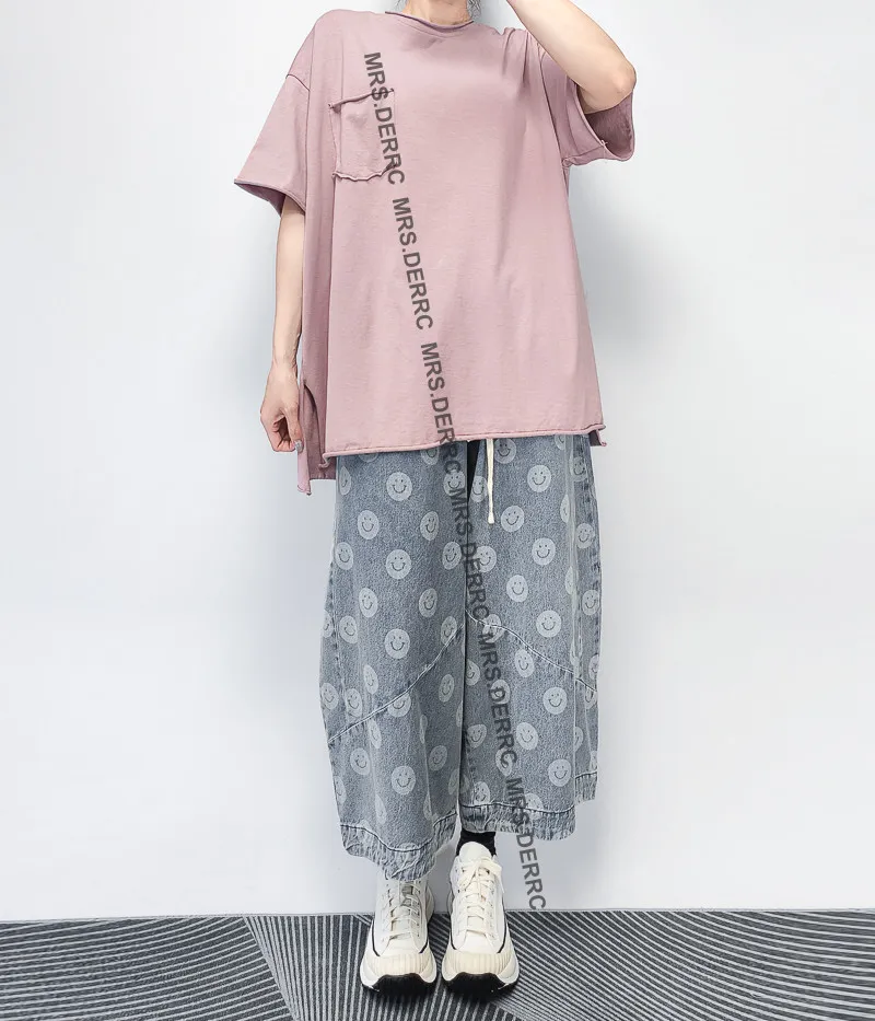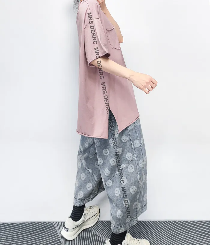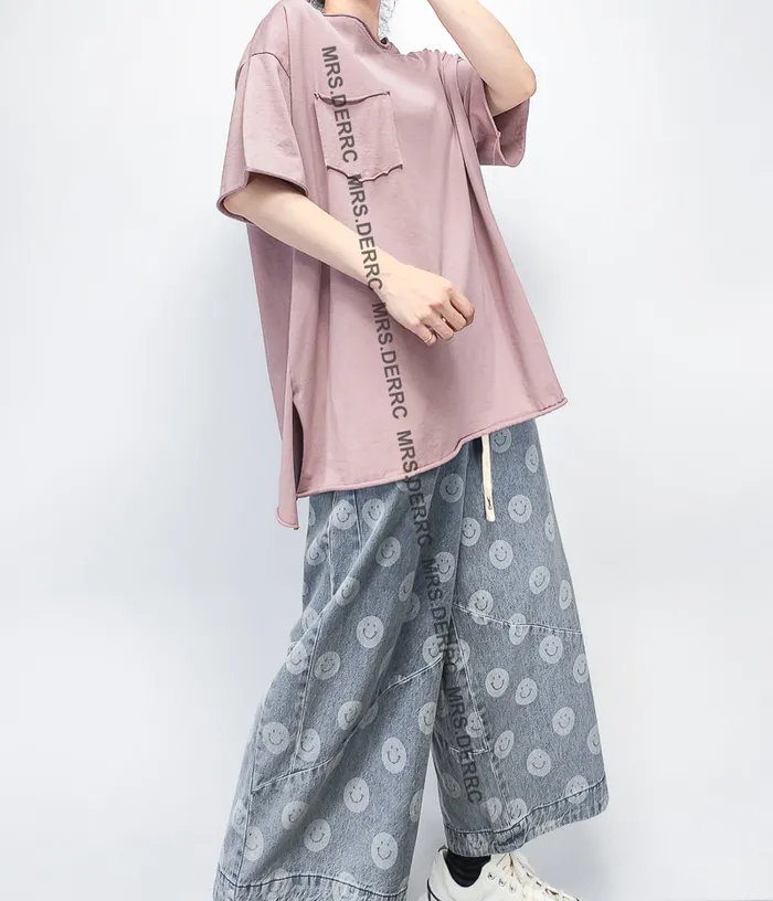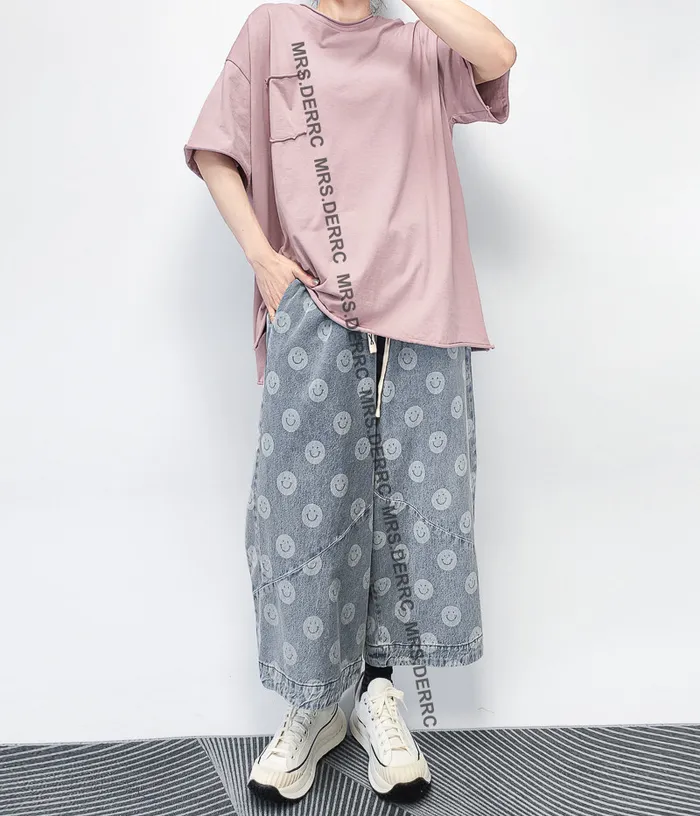 水洗牛仔笑臉抽繩口袋褲