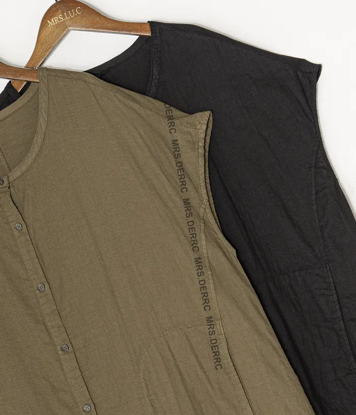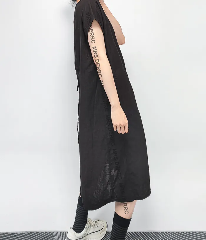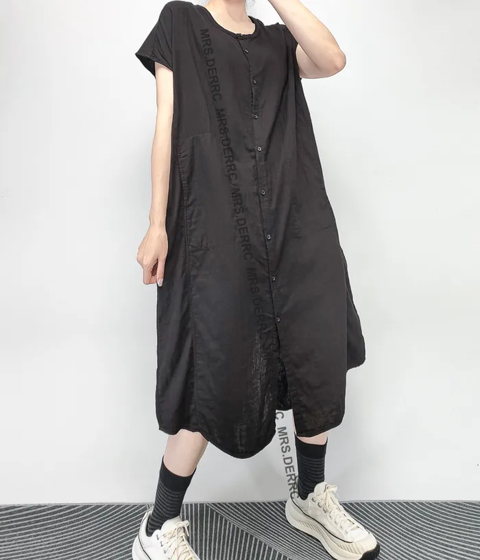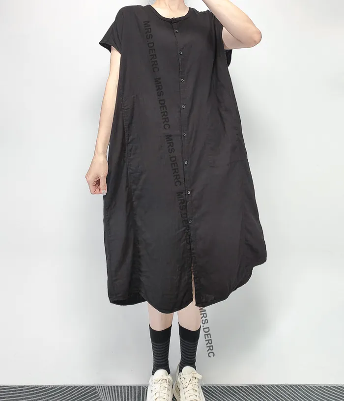 棉質包肩後開岔開釦口袋洋裝(黑色)